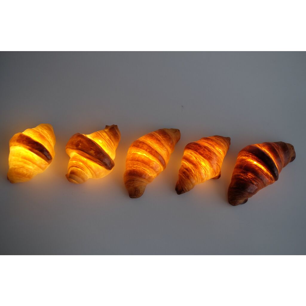 The Pampshade Croissant is the perfect embodiment of France's most famous pastry with its gentle glow that can only be described as rich and buttery in hue. Because we only use real croissants when making this lamp, it continues to be our most challenging Pampshade to produce. Still, the results are worth it—a delicate expression of light that can only be experienced by using freshly baked croissants. This Pampshade provides a gentle ambient light source and is designed to be displayed on a table or desk.