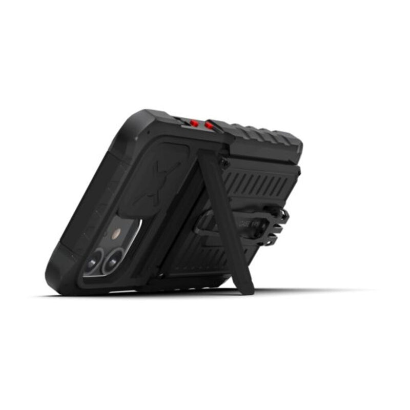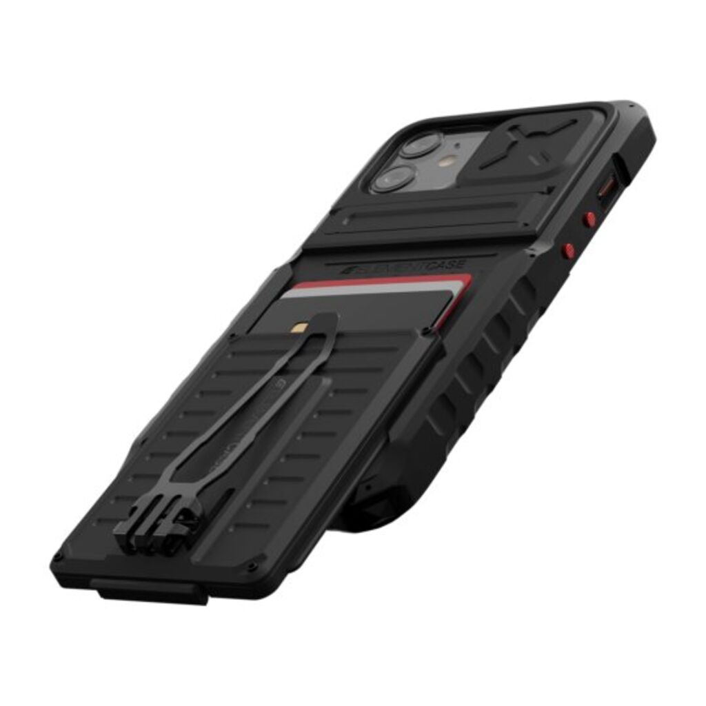 Black Ops, the legendary phone case, once again rises to a new level of tactical readiness. Made with the expert engineering, high end materials, and precision CNC machining that only Element Case can deliver, the Black Ops delivers MIL-SPEC armored protection for your phone while also providing even more tactical functionality than ever before. With an integrated, removable card magazine to carry cards and cash, a retractable kickstand for easy hands-free viewing, protective sliding camera lens cover, and more, Black Ops once again establishes itself as the ultimate tactical phone case, as always, ready for duty. Black Ops is wireless charging compatible, including MagSafe charging, when the card magazine is removed.