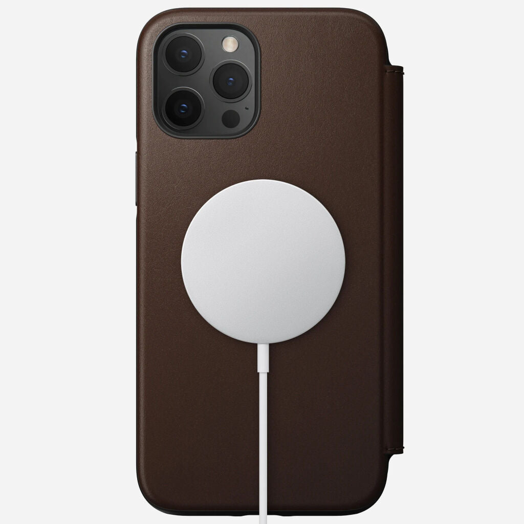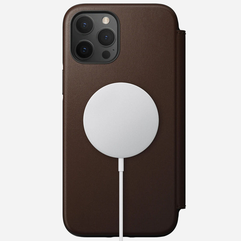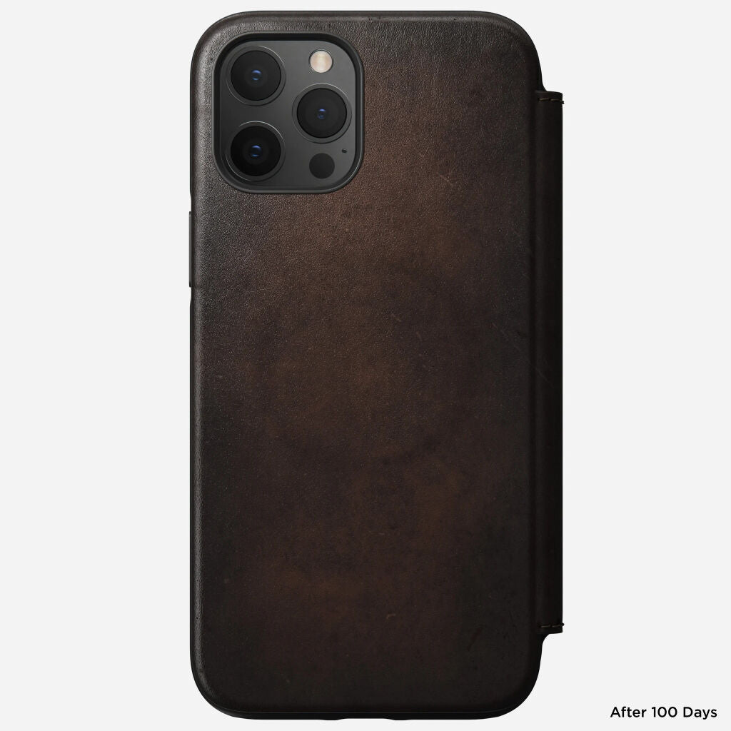 Rugged Folio is a sleek and functional leather folio case that offers rugged protection for your iPhone and now works great with MagSafe. Built with a high-grade polycarbonate body, an all-new internal shock absorption bumper, and a raised TPE bumper along the perimeter of the screen, Rugged Folio provides maximum protection for your iPhone. With three card slots and one cash slot, this folio offers ample storage for your essentials. Wrapped in supple Horween leather, Rugged Folio will develop a patina with time and takes on a look as unique as you.