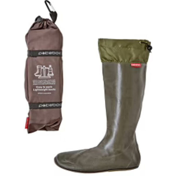 The convenient, lightweight solution to rain that you'll want to take everywhere! Designed with natural rubber to ensure the upmost water-resistance and delightfully foldable construction. Pokeboo's form fitting design maintains a snug fit from calves to toes, offering a pleasant and comfortable walking experience in any weather condition. Best of all the weight of both rain boots combined weighs little more than a bottled beverage. Each pair of boots can easily be stowed in the the included carrying pouch complete with a handy carabiner that easily connects to the outside of most packs. The ideal choice for any outdoor setting from camping to fishing trips or even open air festivals.