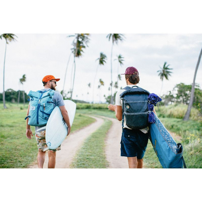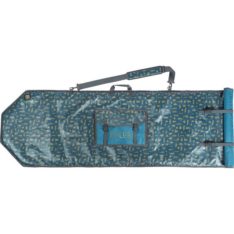 This gnarly bag is for a surfboard. You can put other things in the convenient front organizer pocket like your wax, your tools, maybe a brew. Word has it this versatile bag can even be used as a sleeping bag if you're getting in some late night beach time, as it is padded and insulated. Poler put all this inside a cool blue ocean mushy trees pattern, and then added a handy removable shoulder strap. Awesome. Totally awesome.