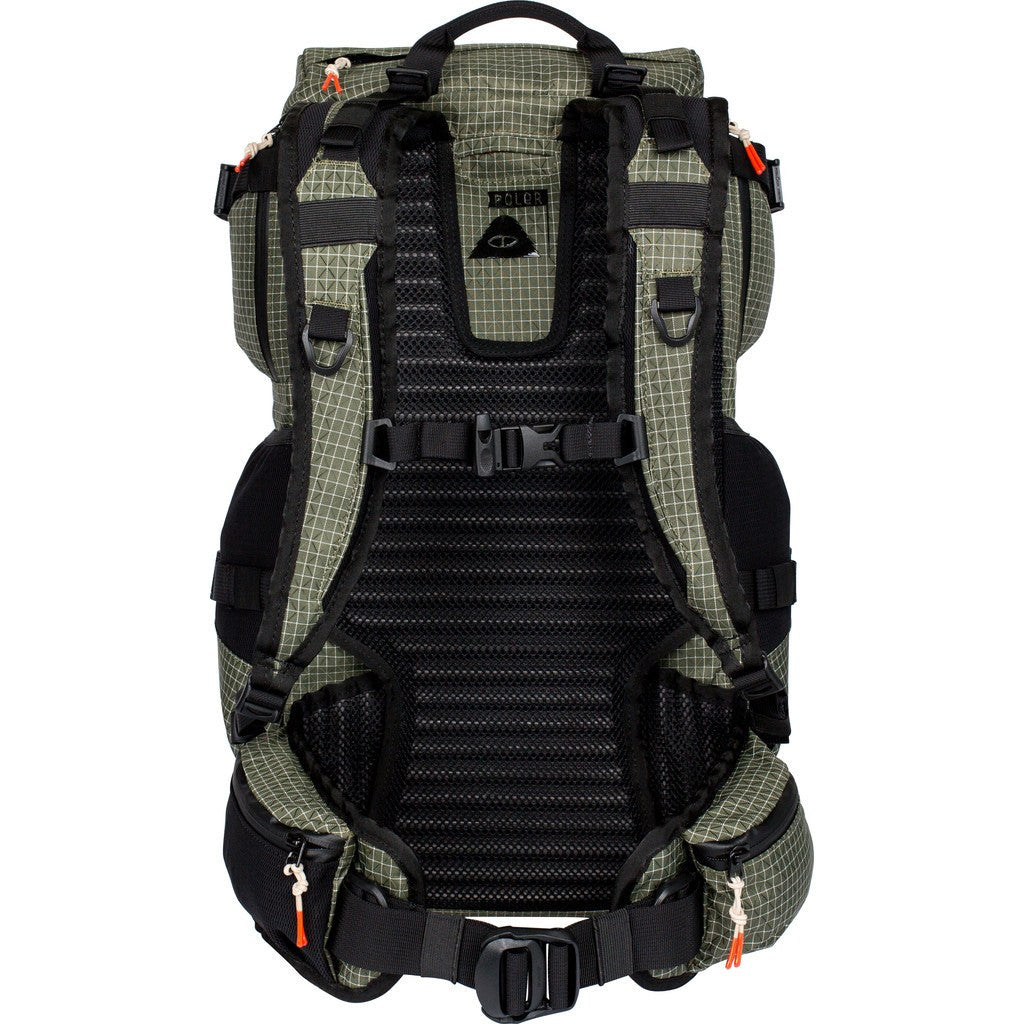 Poler has updated their classic vintage Rucksack. But first, what in the world is a "rucksack?" Rucken is German and means back, sack means bag. Rucksack sounds more efficient than back bag. What's different in this version? The laptop is now accessible from the outside via it's own zipper compartment, two side pouches were added and this season there are new colors and patterns. This one from the Orange Label line has a trendy forest green pattern with orange accents that is sure to turn heads.