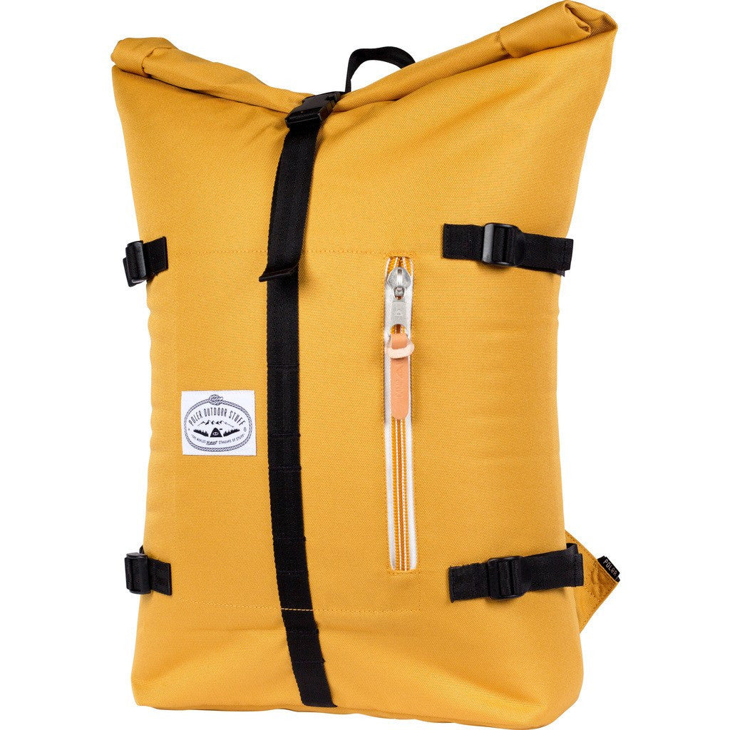 Poler's keepin' is classic and simple with their Retro Rolltop Backpack in Mustard. The Rolltop Backpack is truly refreshing, combining outdoor style with cool urban design. It features a spacious main compartment that's enough to pack your lunch, computer, clothes and whatever else your day needs.