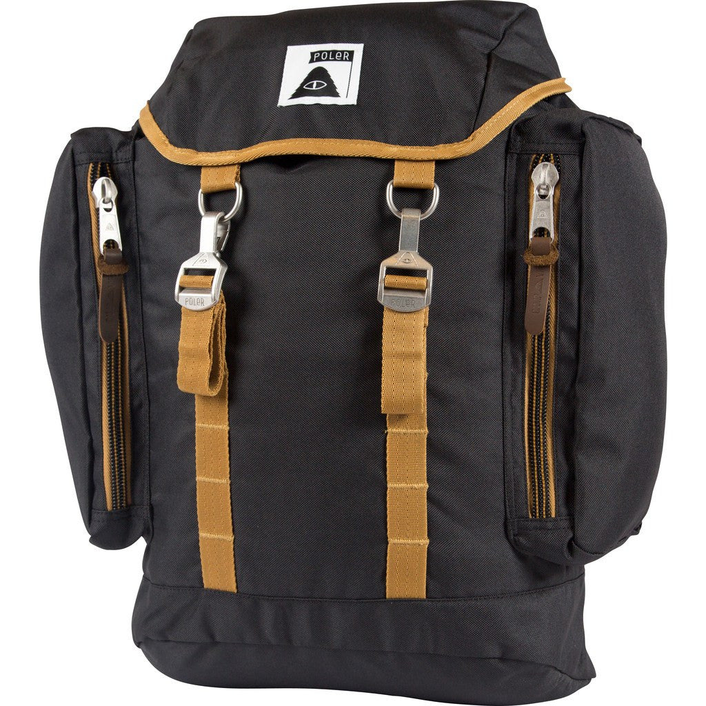 Poler has updated their classic vintage Black Rucksack Backpack. But first, what in the world is a "rucksack?" Rucken is German and means back, sack means bag. Rucksack sounds more efficient than back bag. What's different in this version? The laptop is now accessible from the outside via it's own zipper compartment, two side pouches were added and this season there are new colors and patterns. This one is a stylish black with tan straps and details. Sehr gut! That's German for very good.