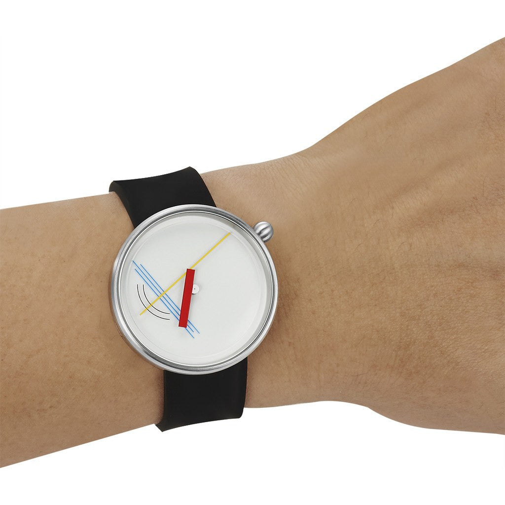 The Diagram 17 is inspired by Gestalt psychology, which explores the way that the human mind acquires and interprets perception. Employing a contrasting set of curved and angular lines to create unique perceptions, the Diagram 17 Watch is a bold, striking timepiece. Geometric elements are enhanced by the white background and distinctive design of the hands. Step outside the usual and explore with the Diagram 17.