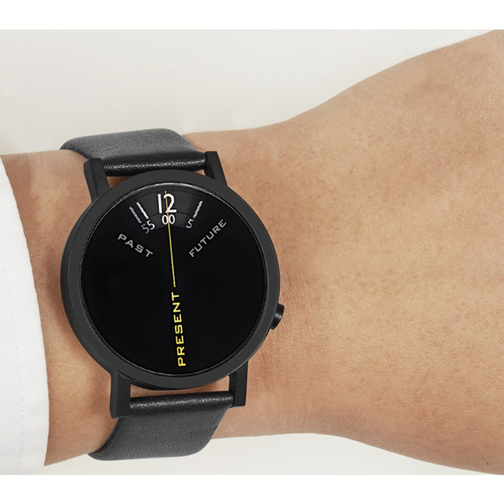 The Daniel Will-Harris Past, Present & Future Watch is a unique timepiece that beautifully reminds you that "there is no time like the present." Design by computer graphics pioneer Daniel Will-Harris, the watch teaches us to see only the present time:what's past is past and the future doesn't exist yet, the time is now. At once coolly minimal and warmly conceptual, the Past, Present & Future watch is a meditation on time; Time is always in the present.