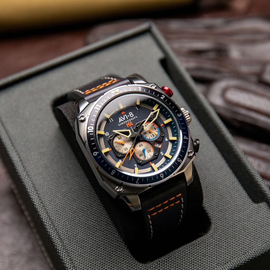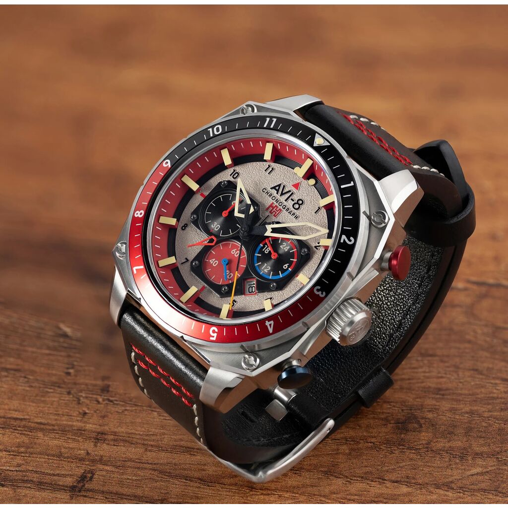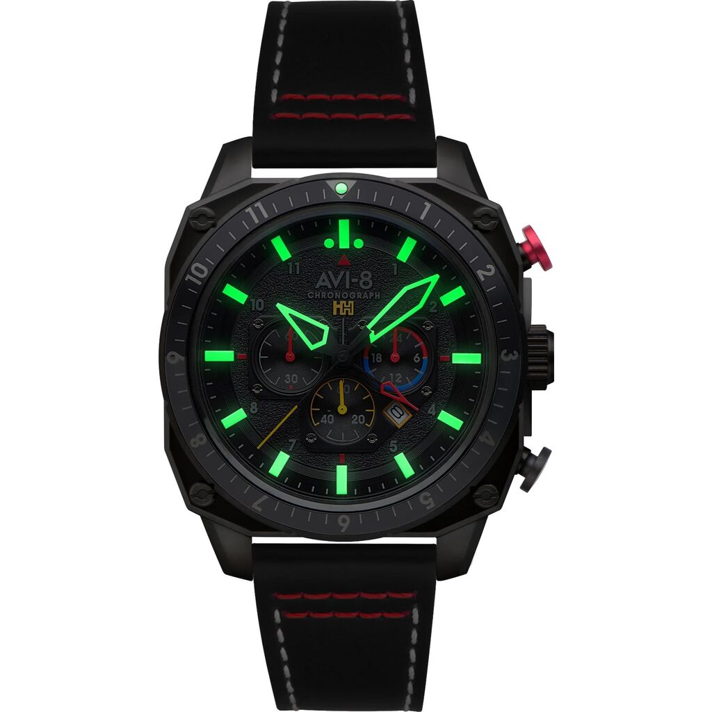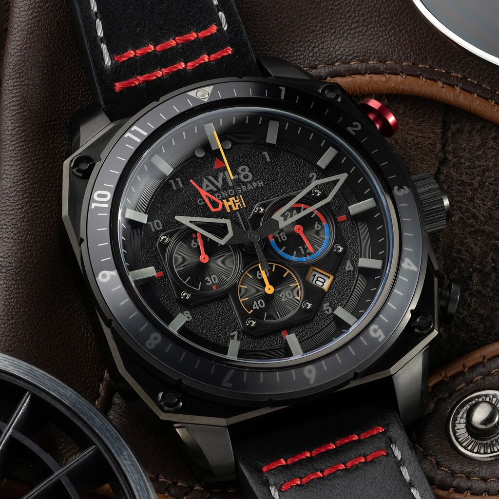Japanese Quartz Chronograph Movement: The AVI-8 Hawker Hunter Atlas Dual Time Chronograph is equipped with a high-precision Japanese Quartz movement that ensures accurate timekeeping and split-time functionality for precision seekers.