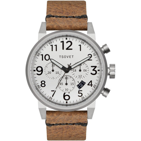 Tsovet JPT-TS44 Steel & White Chronograph Watch | Tan Leather