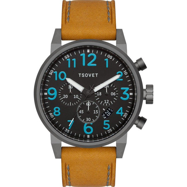 Tsovet JPT-TS44 Gunmetal & Black Chronograph Watch | Tan Leather