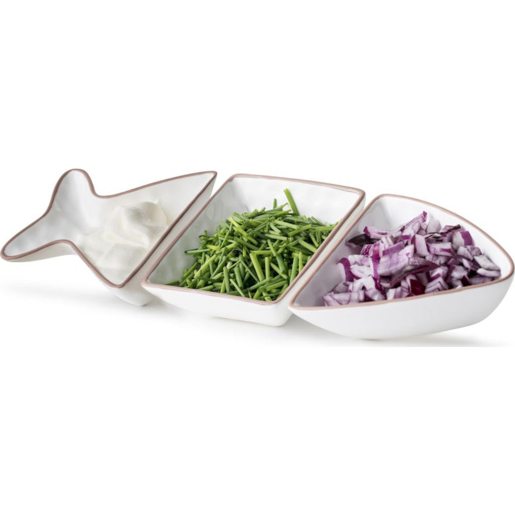 The Sagaform Serving Bowl is designed as a 3-piece set, which when placed together creates the shape of a fish. A fun gift to give away or a surefire way to lift the mood of your table setting.