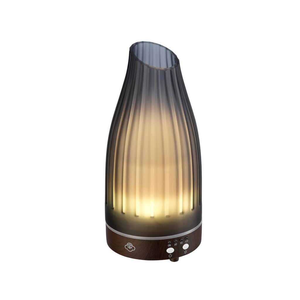 The Flare Ultrasonic Aroma Diffuser, designed by Cozzolino Studios, helps you find balance in a stressful world. The amber glass cover will add warmth to any room in your home. The Flare Diffuser runs up to 4-hour continuously or up to 8-hour intermittently. Customize your experience with the 60, 90, 120-minute timer and 7 LED lights. The 7 LED lights can rotate or be set to one color. To use, add water and the essential oil of your choice, turn it on, and let the cool mist refresh your day.