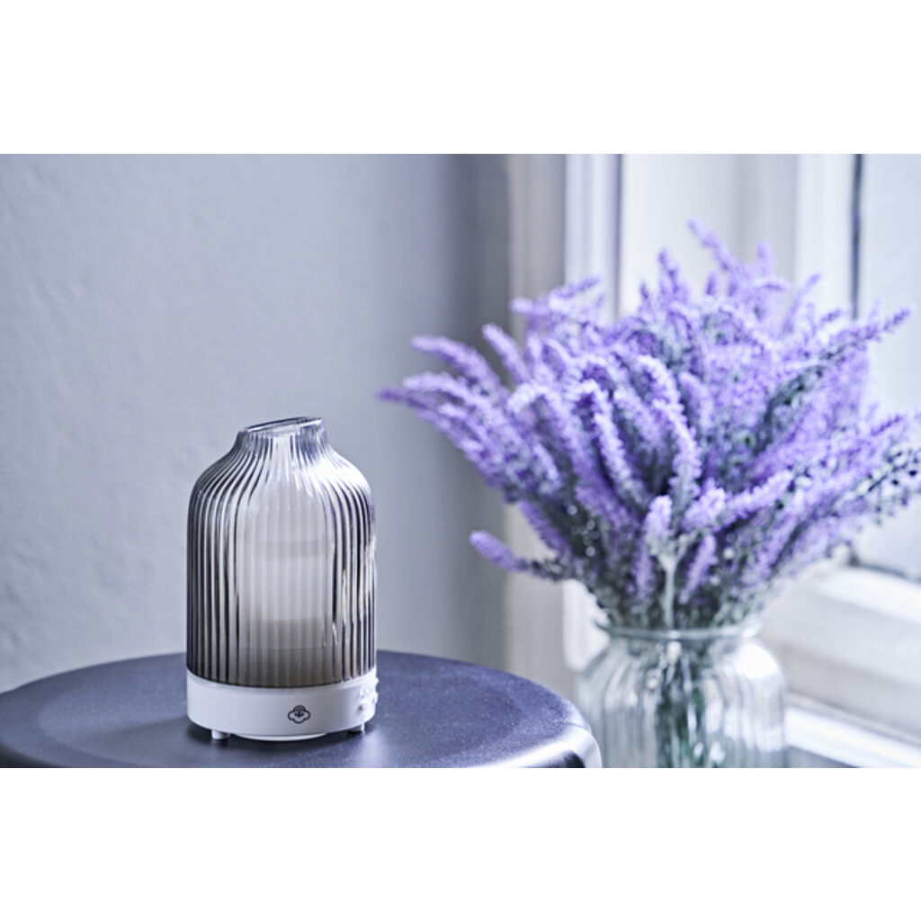 A beautifully designed electric aromatherapy diffuser offers a new way to fill your space with the scents you love. The Fountain Diffuser’s grey glass cover adds sophistication to any room. The Fountain features 7 rotating LED lights and runs up to 4 hours continuously or up to 8 hours intermittently. Simply add water and the essential oil of your choice, turn it on, and let the cool mist relax and recharge you.