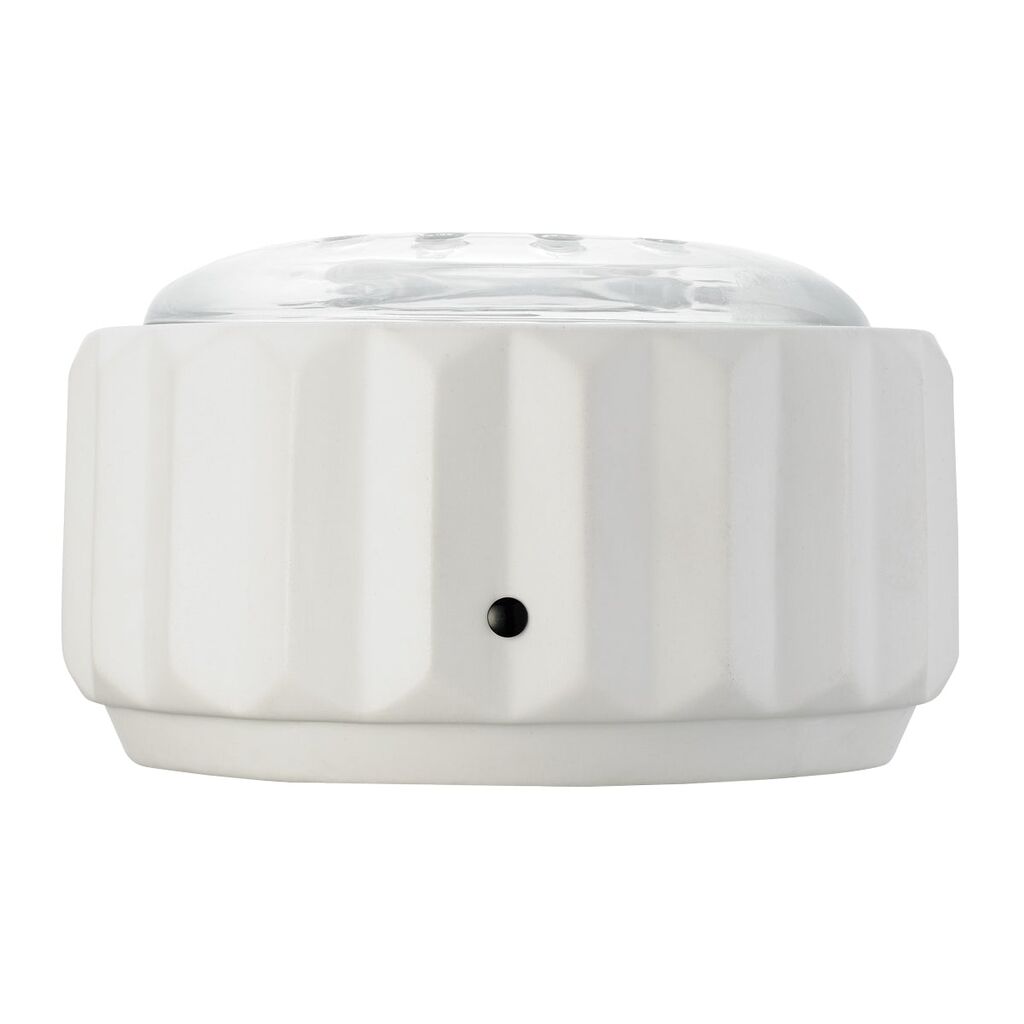 Change your mood with the Eternity Ultrasonic Aroma, Axis, Donut Diffuser from Serene House. The modern porcelain ceramic base and glass top make any space ideal for relaxation. Use 100% essential oils (not included) and water. The diffuser’s ultrasonic vibrations create a cold mist that can scent a space up to 450 sq. feet for up to 14 hours. The diffuser's remote controls the Bluetooth speaker, built-in soothing tones, and 7 LED lights. The 7 LED lights (warm white, green, blue, red, yellow, purple, white) can rotate or fixed one color to enhance your experience.