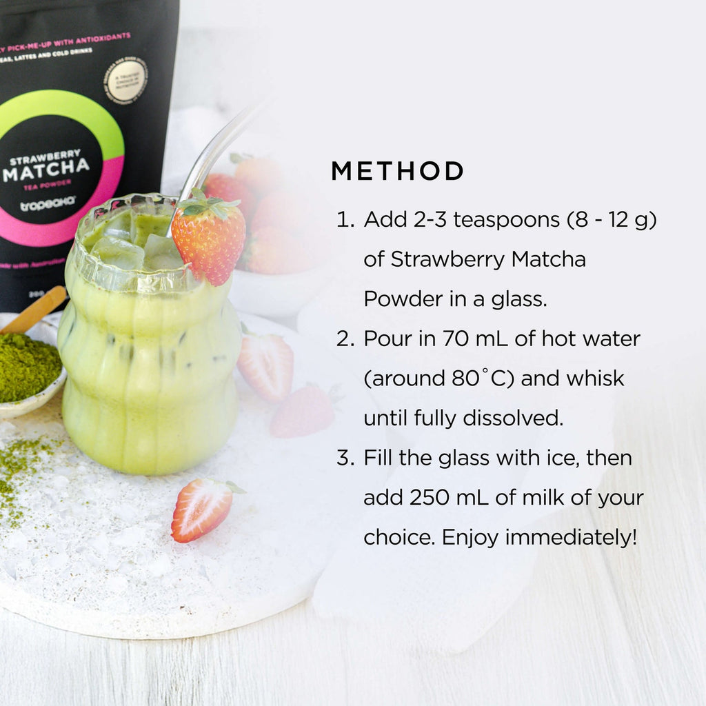 Start your day with clarity and calm. Tropeaka’s Strawberry Matcha Tea Powder combines certified organic matcha with juicy Australian strawberries and creamy coconut milk for a luxurious blend that energizes without the crash. Whether enjoyed hot or poured over ice, this smooth matcha green tea delivers a naturally sweet flavor and vibrant green hue—ideal for crafting your daily matcha latte, stirring into smoothies, or sipping solo. With clean ingredients and a feel-good formula, it’s a refined coffee alternative that supports a focused, balanced lifestyle. Made with premium green tea powder, it’s as beautiful as it is functional.