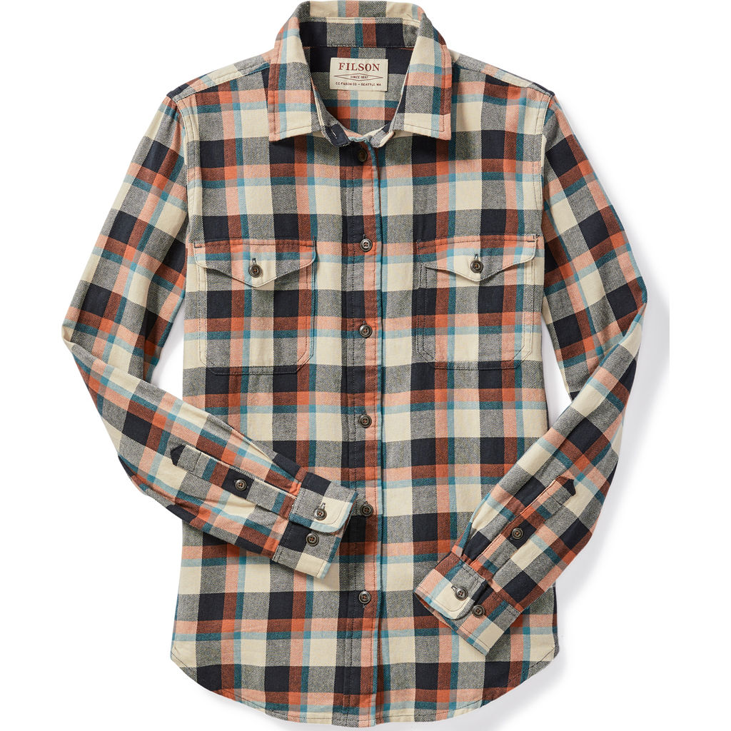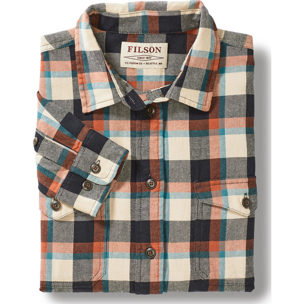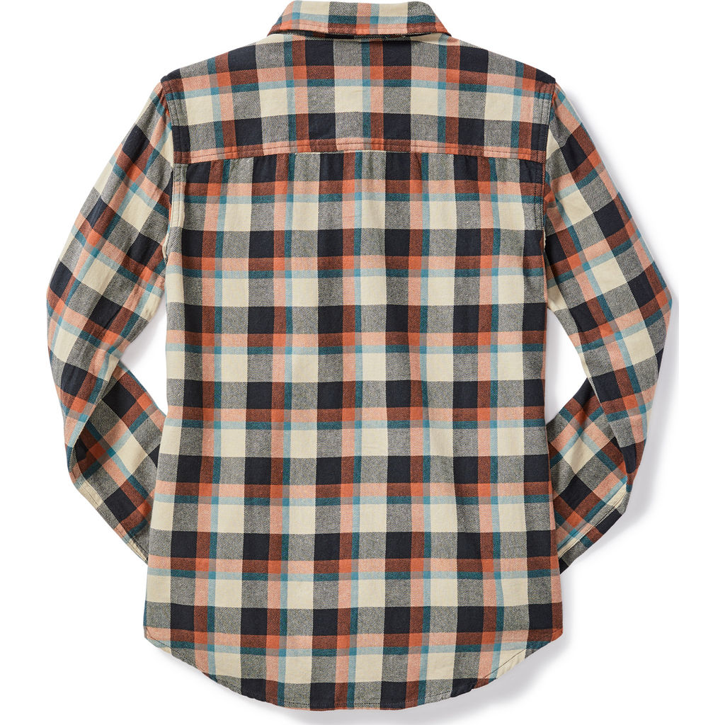 As the sun sets in the middle of the lake and the cool breeze rolls in, the Scout Guide Shirt will keep you warm and comfortable. Made with lightweight and durable cotton twill in a Beige, Copper, and Black plaid flannel print. This button up top provide years of wear and full range of motion with its rear shoulder pleats. Filson believes in living comfortably even in the tiniest life moments.