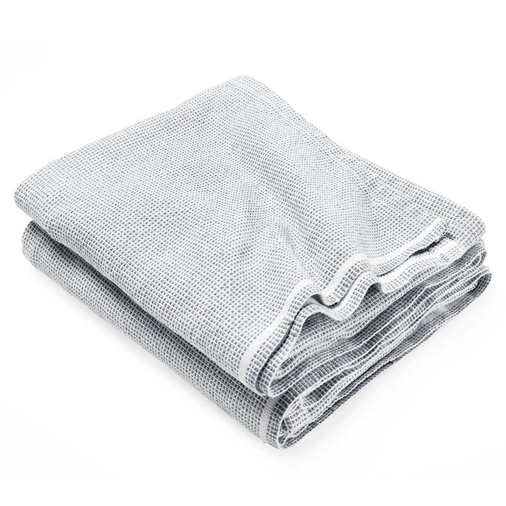 Brahms Mount's soft flatweave takes on a new and stylish look with all-cotton yarns interwoven to define a tiny hobnail motif. A solid accent stripe finishes the blanket at the head and foot. The combination allows the Thorndike to provide a sleek tailored look to your bed. Machine washable and does not fade.