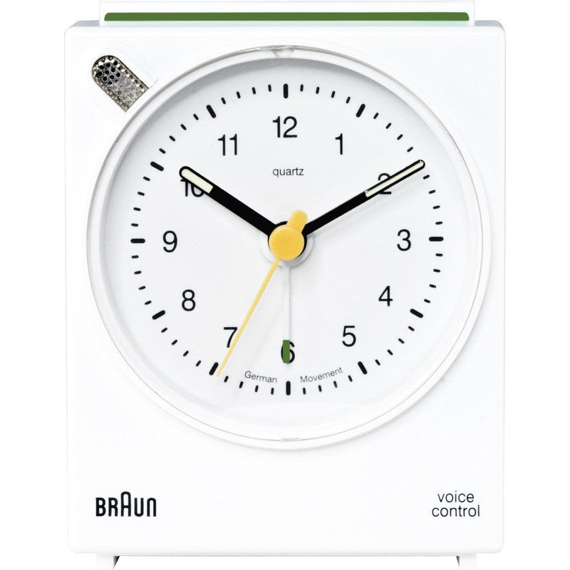 This Braun voice activated alarm clock has an easy to read dial layout, crescendo alarm, voice activated snooze function and a quiet German precision quartz movement. Duracell battery included.