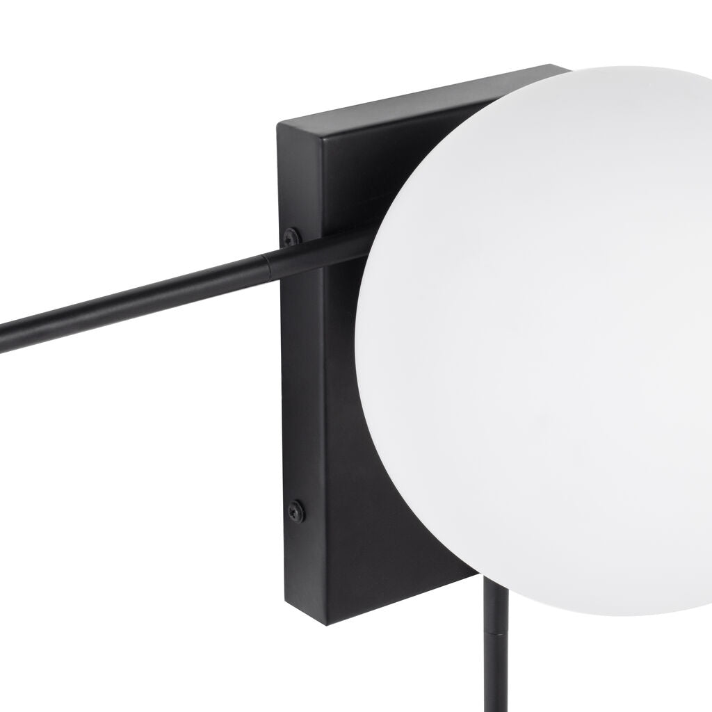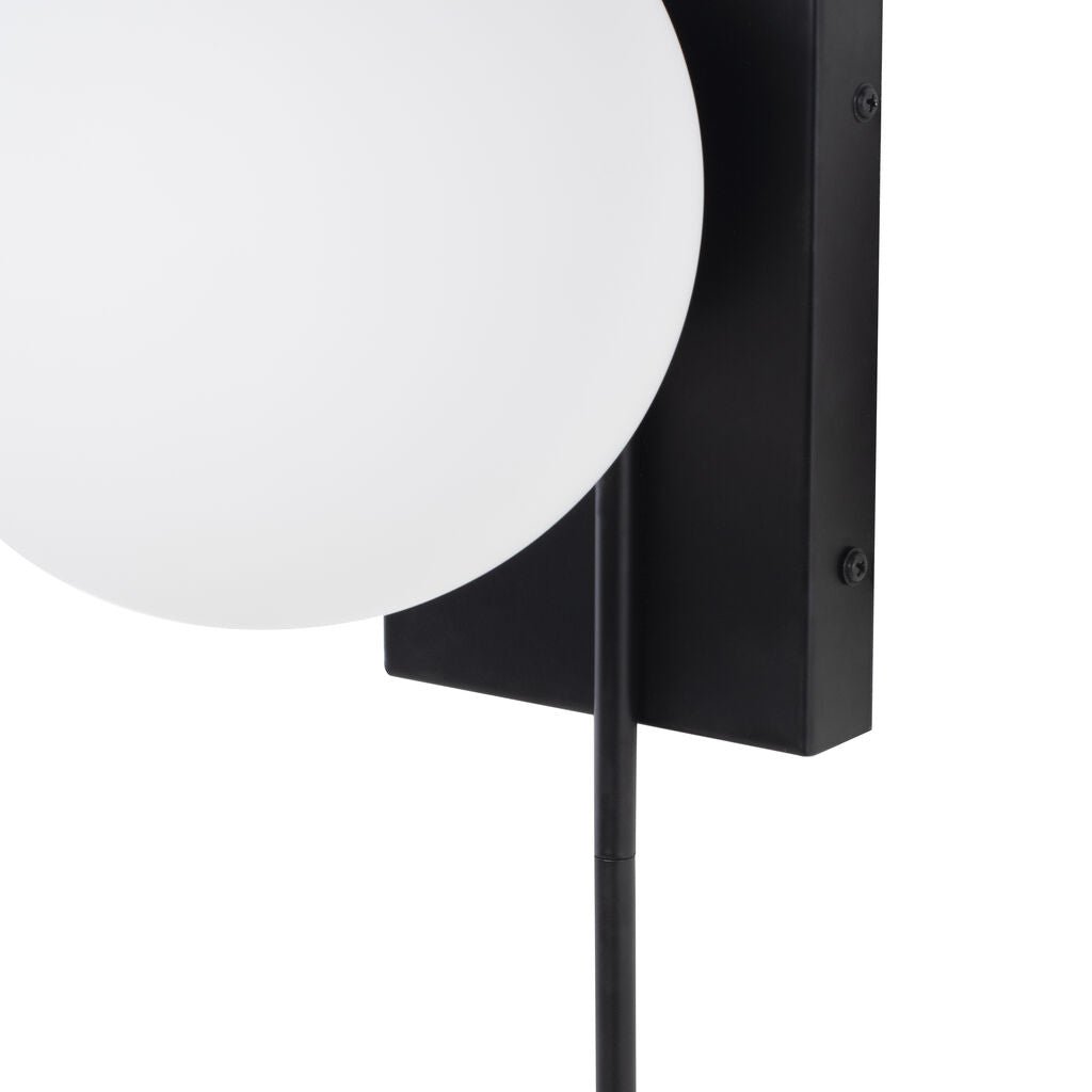 Designed to create an outline along the wall or ceiling, the AlinaÆs charm is its ability to make a bold statement with simple lines. Two thin matte black rods connect in the corner behind a smooth, round orb to create a unique design details.