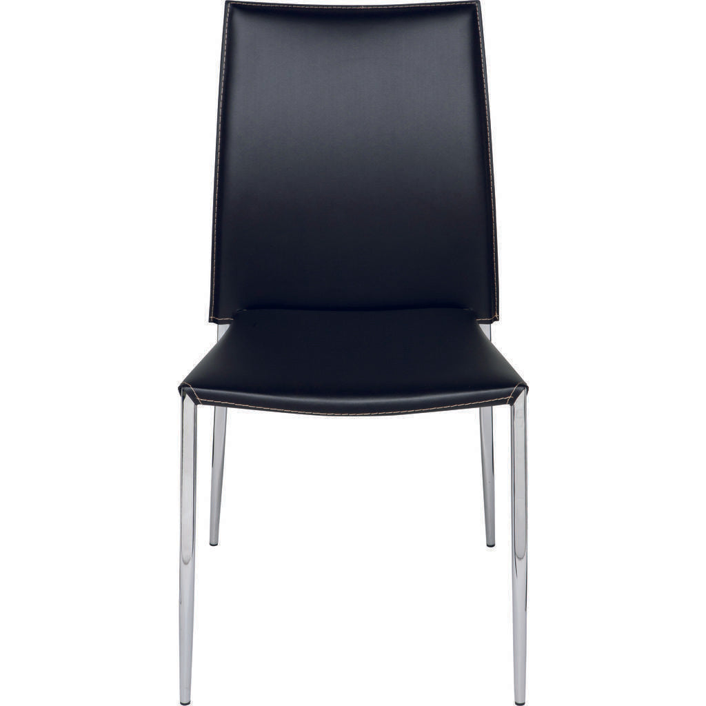 A sleek minimalist form to complete any modern dining area; the Eisner is a striking dinning chair with minimalistic features and convenient functionality. Upholstered in supple black leather, this chair features CFS foam padding for a remarkably comfortable feel. Perfect in pairs and trios, multiple Eisner's can easily be stacked for storage.