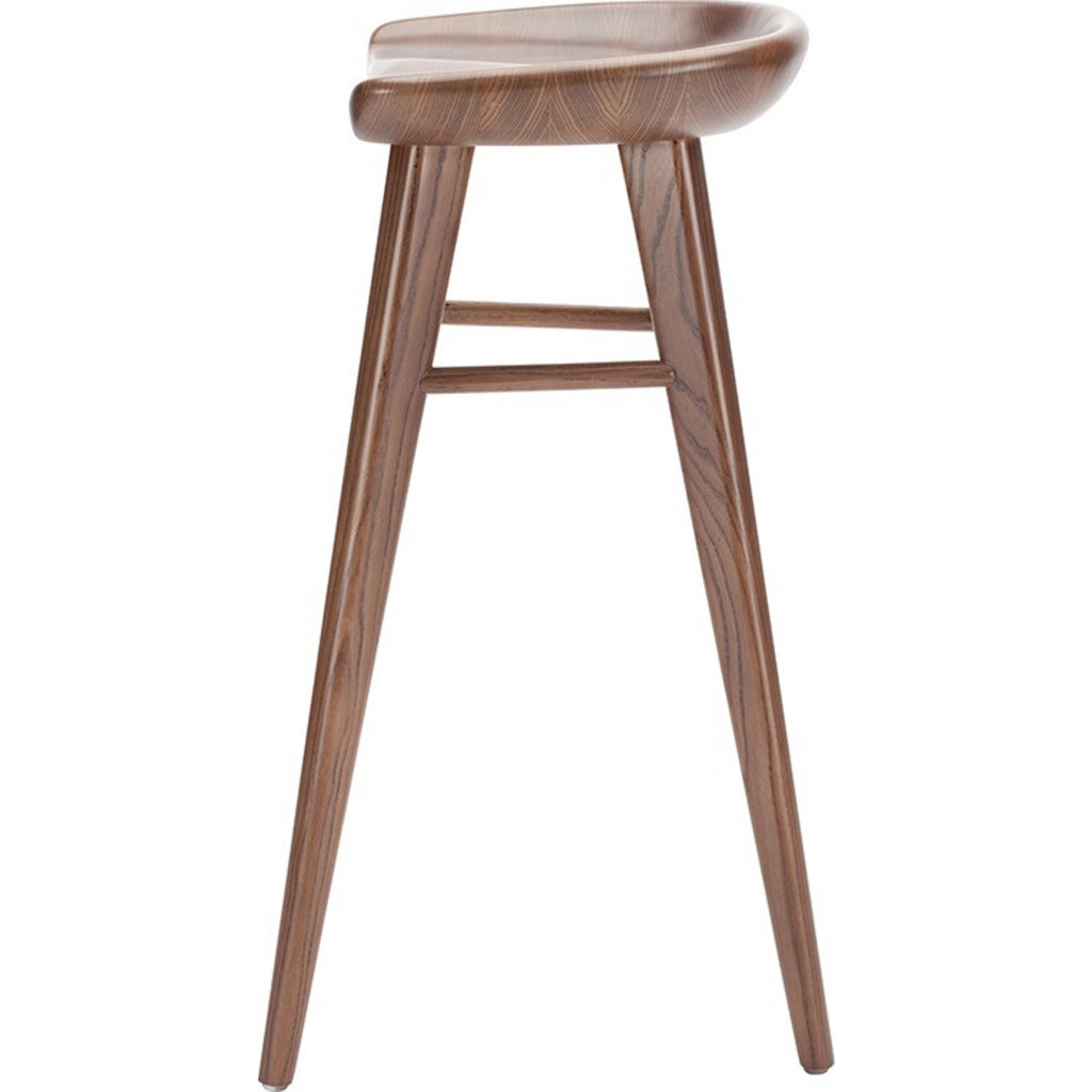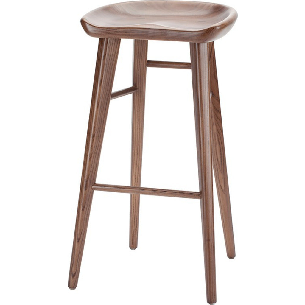 Simple, elegant, classic, comfortable, the Kami bar stool is a solid wood design, distinctive in style with elegant curves and long, straight lines. The four triangular legs are reinforced with cross bracing and a simple footrest, as durable as it is fashionable.