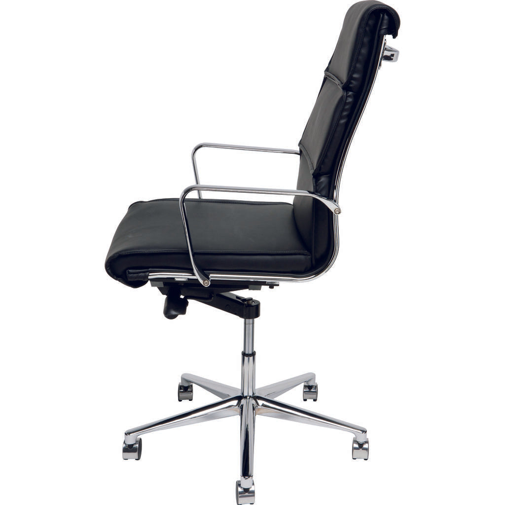 Whether your pouring through spreadsheets or geeking out on a gaming PC; the High Back Lucia Office Chair brings elegance and comfort right to your home office. Upholstered in black leather and crafted with chromed steel, the Lucia features a gas lift to make height adjustments seamless and simple.