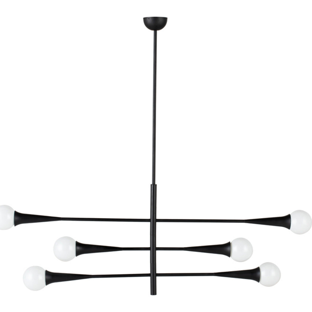 Graceful repetition of linear form defines the Orion 3 pendant. Featuring 3 matte black adjustable arms with trumpeted sockets the Orion 3 can be configured to suit any design application. Fanned, perpendicular, or rounded, the creative possibilities are limited only by the imagination.
