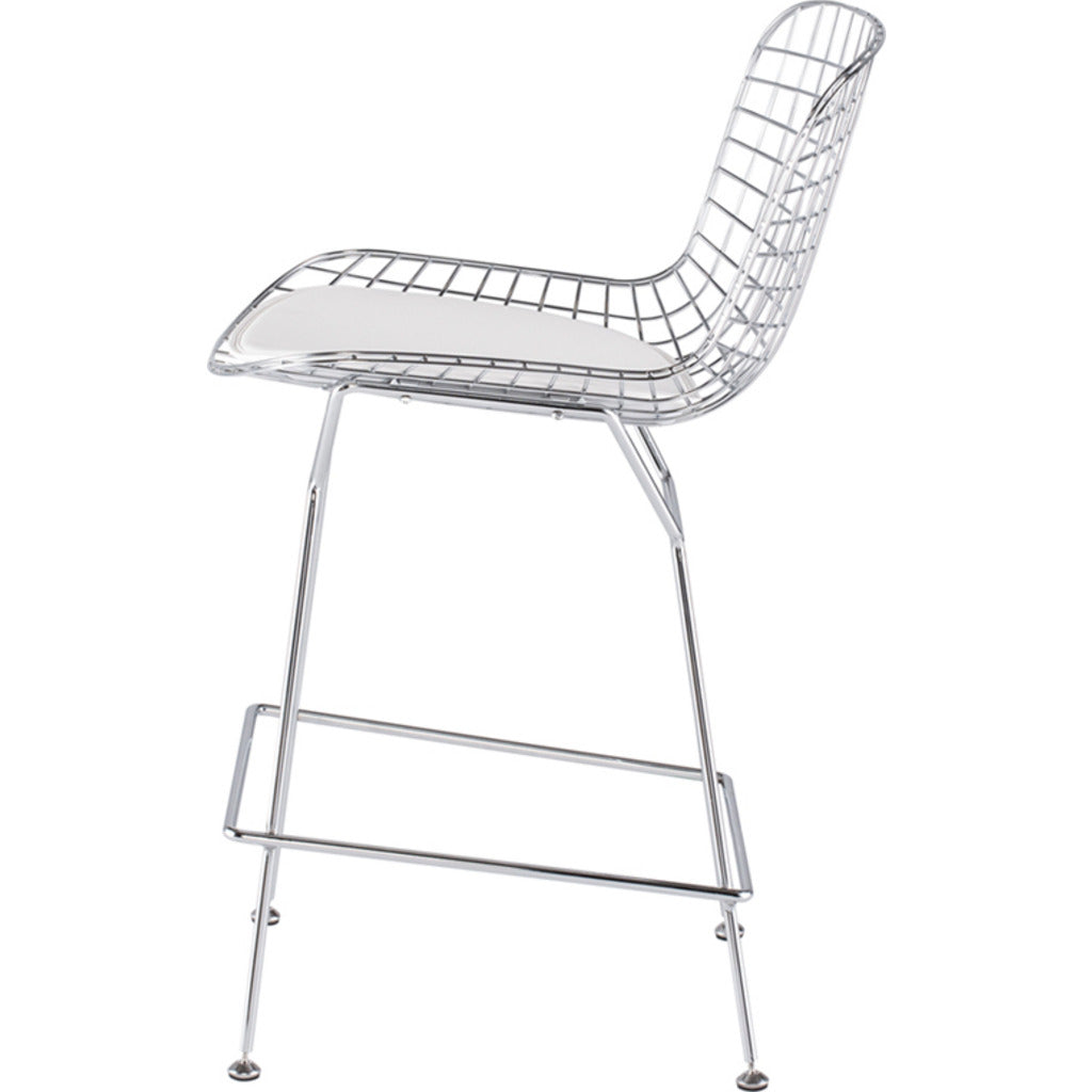 The Wireback counter stool exemplifies a contemporary urban design style popularized with the advent of computer graphics. Crafted entirely out of chromed steel, the Wireback presents an enticingly fluid geometric aesthetic. A soft lightweight PVC seat cushion provides comfort with visual pop.