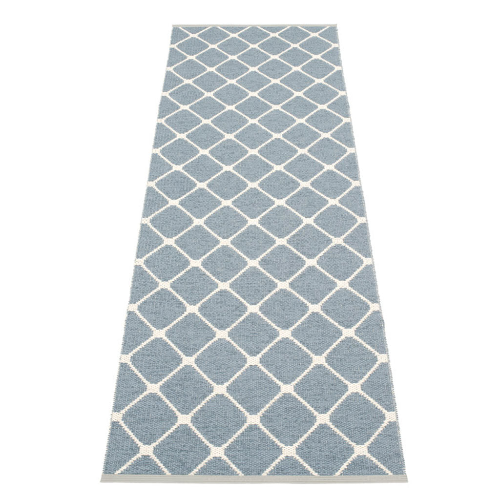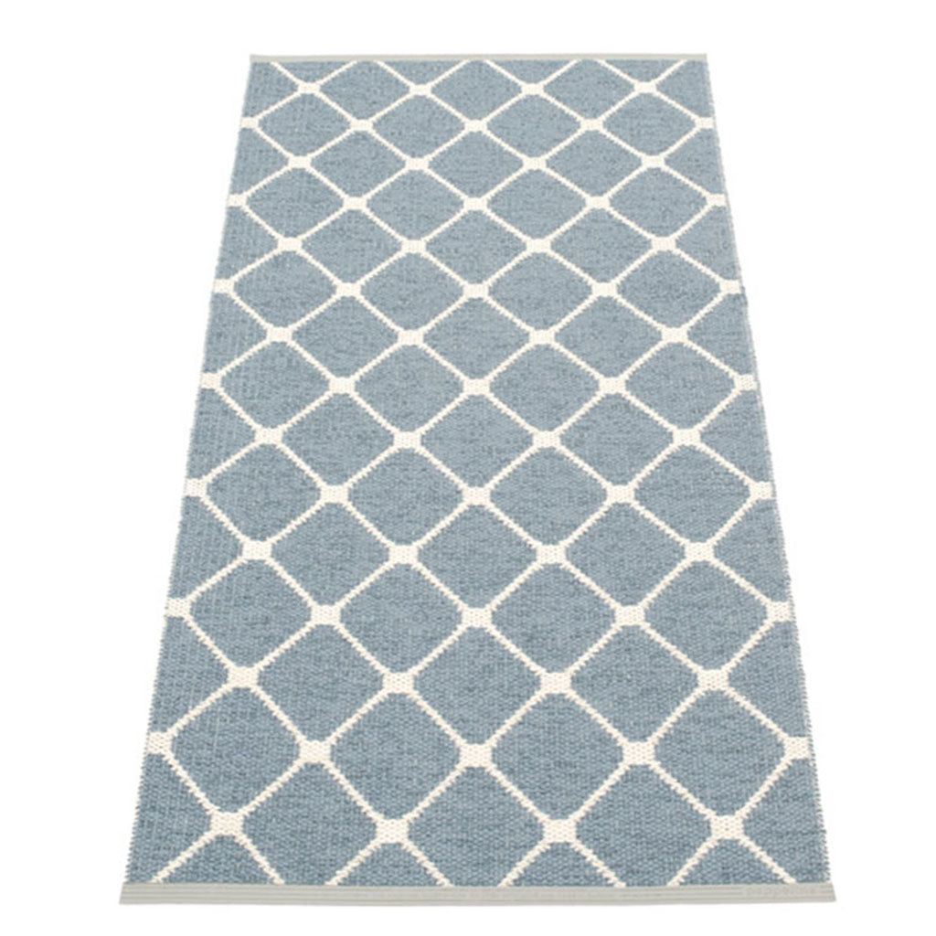 Pappelina Rex is the original plastic rug, crafted with love and pride in Sweden. Introduce a Pappelina's Rex rug has simple fishnet patter design and fresh color combinations. Tasteful and stylish, the classical Rex pattern will sit happily in a contemporary or traditional setting. Woven by hand and brought to life through a close interplay between design and weave. Woven on a traditional loom using wooden shuttles. Non-absorbent and hypoallergenic, Pappelina plastic rugs are easy to clean and machine washable at 30°C. These are woven using two colours together to give a subtle colour combination. Very practical and easy to care for rug in Swedish manufactured, certified PVC. Double folded hemmed edge with strong seam and sewn rubber label. Measurements may vary ±4% as a result of the various craft processes during manufacturing. Pappelina rugs can be used indoor and outdoor. Rex rug is ideal for both contemporary and traditional settings. The modern rug with a maritime striped look can be placed on the balcony, on the terrace or in the living room. Pappelina Rex rugs are beautifully styled, longer lasting, easy to clean, waterproof, mould resistant, dust repellent, fibre free and sterile with no toxin content improving life for asthma and allergy sufferers. Go on and feel the benefit!