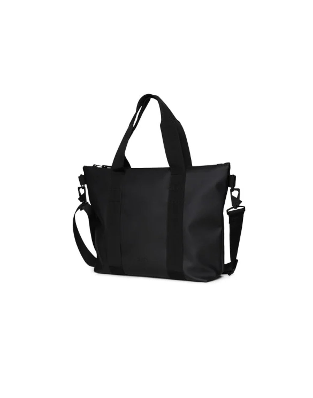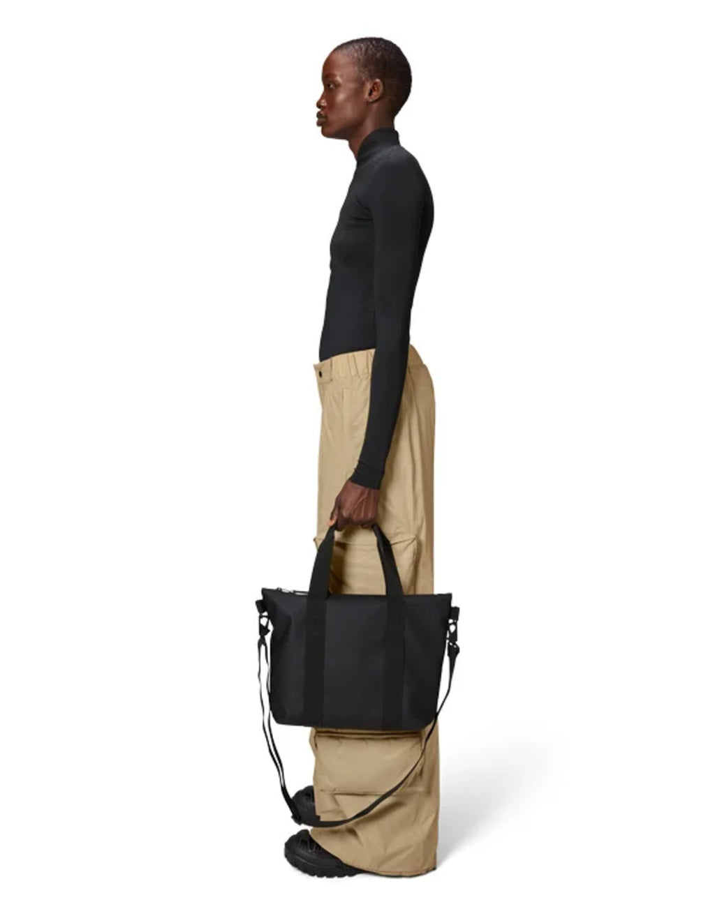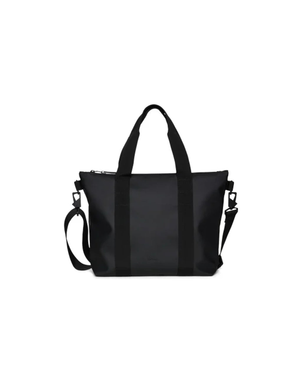 Tote Bag Micro is a waterproof tote perfect for shopping, commutes or the office. Characterized by an elevated utility-look and functional details. The full-length coated zip reveals a single main compartment for everyday essentials. Designed to meet your carry-need, Tote Bag Micro offers various carrying options through its detachable shoulder strap and webbing carry handles. Carry handles features attachment rings for small items like keys. Tote Bag Micro is cut from Rains' signature PU fabric, engineered for carrying strength, durability and a smooth feel.