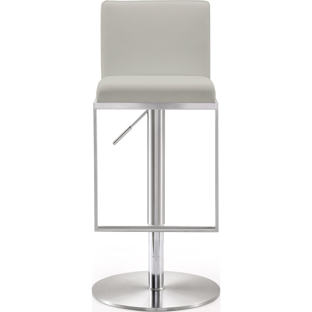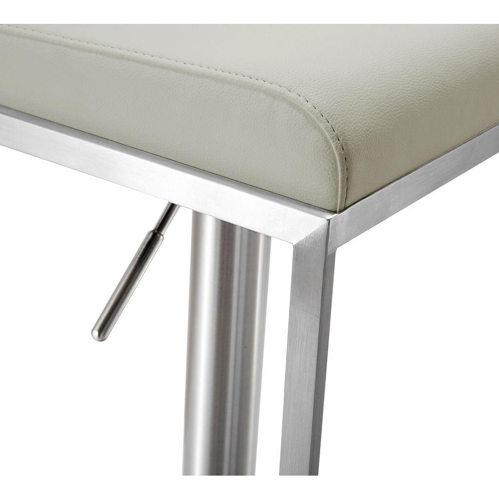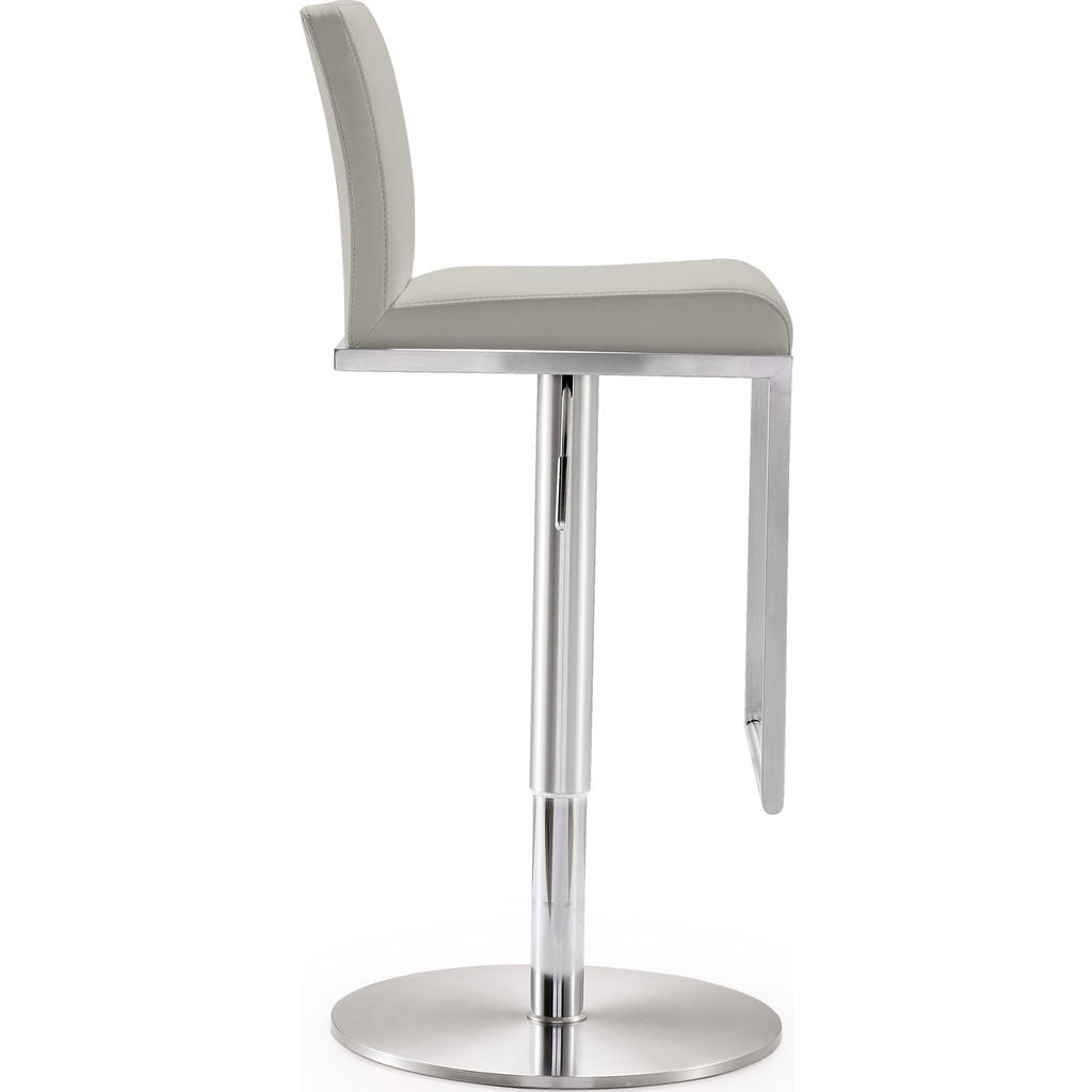 The TOV Furniture Amalfi Steel Adjustable Barstool in Light Grey is the perfect stool for your kitchen or bar area. It is a contemporary and modern design that will fit in with almost any style. Made with a solid stainless steel frame that provides a sturdy base, while the plush seat and footrest ensure maximum comfort. The angles and gentle curves on this stool make a subtle statement.