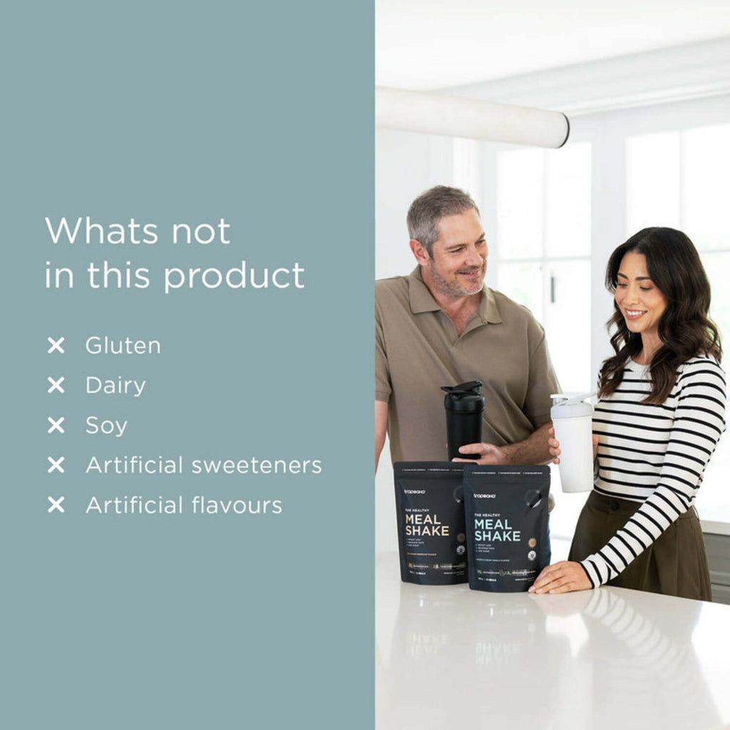 The Healthy Meal Shake provides a convenient way to boost energy, reduce cravings, and enjoy balanced nutrition. No need to count calories or stress over preparing a healthy meal; just mix it with cold water for a satisfying and delicious shake. With 30g of organic protein, 2.5g of marine collagen, and 7g of fiber per serving, this shake helps support skin, nail, and gut health. Skip the subpar alternatives and try The Healthy Meal Shake to feel nourished and energized.