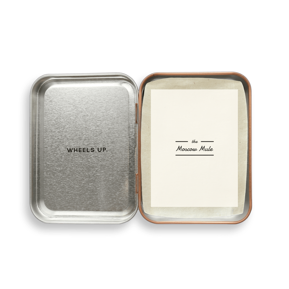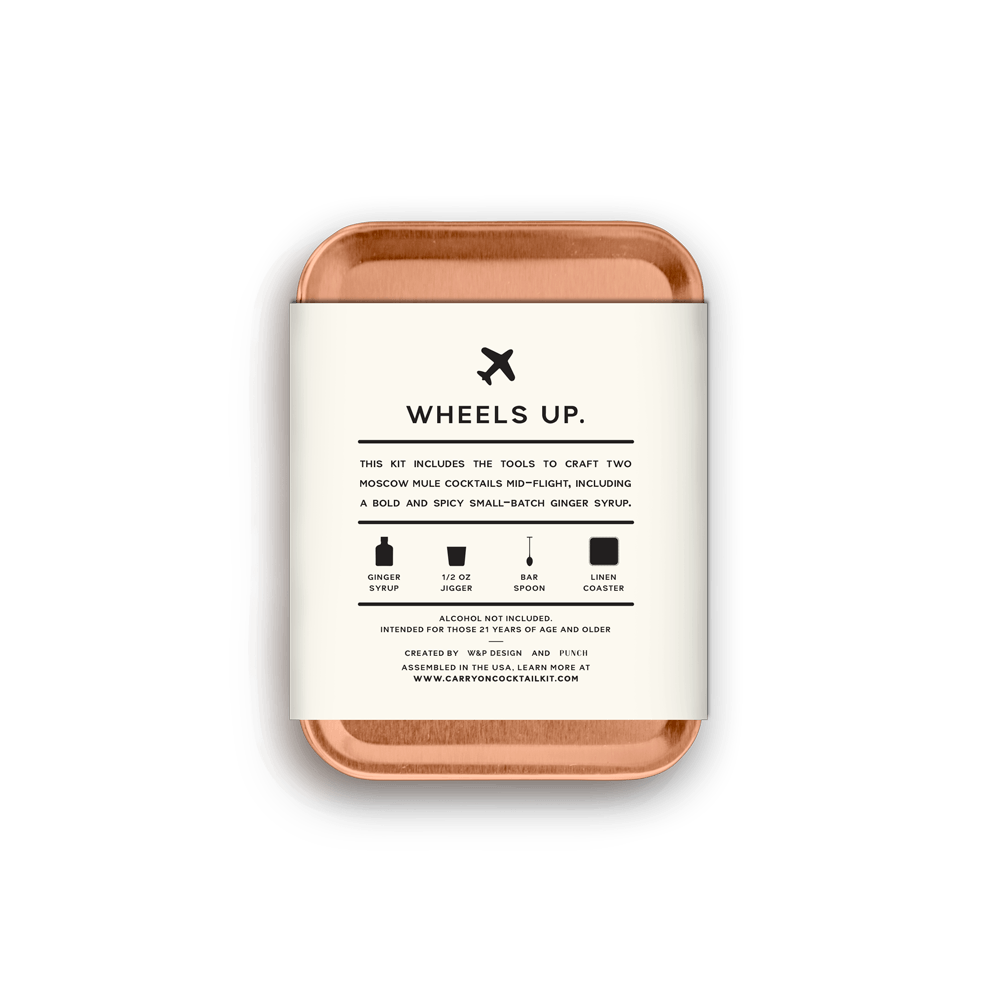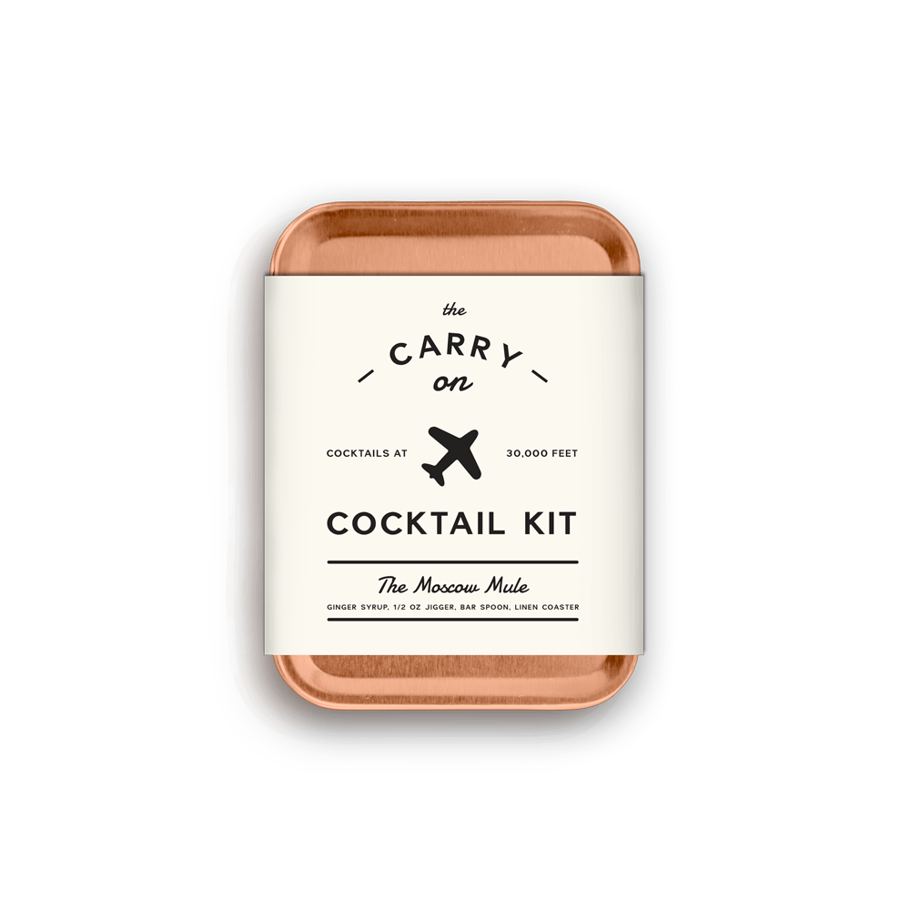 W and P Design makes sure you're always prepared with the Carry-on Cocktail Kit. The Moscow Mule Kit includes enough mix and bold ginger syrup for two rounds of Mules.