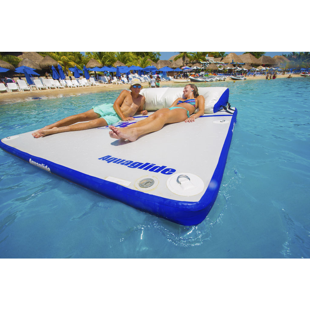 Have the perfect island for swimming, lounging, or playing with the Sundeck Swim Platform from Aquaglide. Incorporating platforms into an Aquapark design increases parental participation, parents are given a place to rest and families can also congregate during Aquapark use. The durable construction allows it to be anchored all season long, if necessary. The Sundeck has 8 D-rings on the top for attaching accessories, such as the softpack, or other water crafts such as jet-skis or SUP boards.