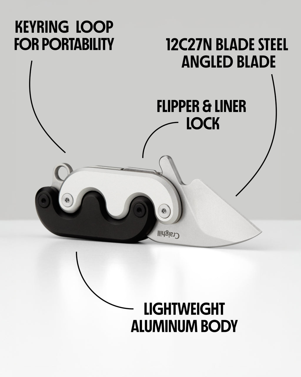 Make short work of everyday cutting tasks with a lightweight, portable mini-knife that’s full of surprises. A continuation of our collaboration with Chen Chen and Kai Williams, the Sidewinder Knife Mini is the latest member of the Sidewinder Knife family. It retains the enigmatic motion of the original Sidewinder Knife and the Sidewinder Knife Deluxe — in a smaller, lighter, more portable package. Truncated rather than scaled down, the Sidewinder Knife Mini packs in more daily carry utility, with its shortened straight blade, lightweight aluminum body, and portability-promoting keyring loop.