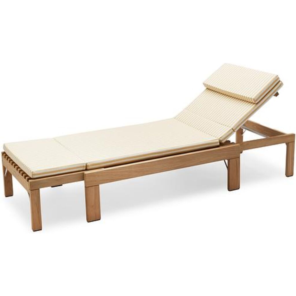 Riviera Cushion is custom-made for the Riviera Sunbed. The backside is designed with an anti-slide fabric that keeps the cushion in place. Able to withstand wind and weather, the upholstery fabrics are Oeko-Tex certified and extremely colour and lightfast as well as water and dirt-repellent and even mildew-resistant. The cushion dries exceptionally quickly, even after a heavy downpour, as the foam has an open-cell structure that allows both water and air to pass through. The foam provides a firm and comfortable texture that remains the same year after year.