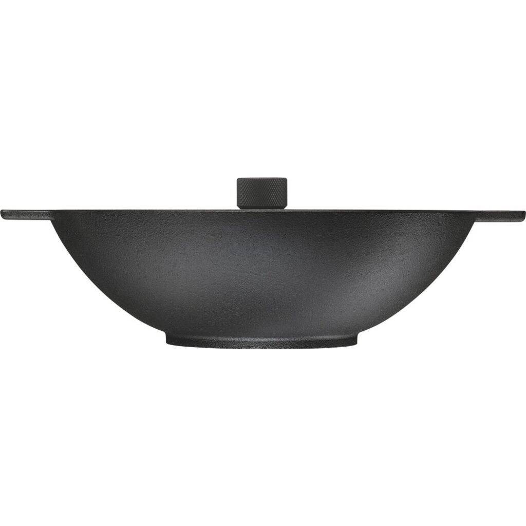 Item Description: Triple layer canola oil seasoned wok with cast iron lid. The wok has two easy to grab cast iron handles while the cast iron lid has a black anodised aluminium knob. The lid has drop easy ridges that help to humidify the dish. Precision turned bottom that work on all stoves. The perfect tool for stews and frying dishes that tend to splash.