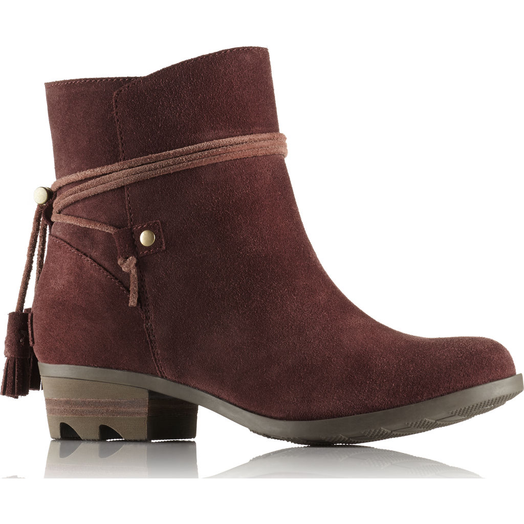 Don't let the elements bring your style down. The Sorel Women's Farah Short Waterproof Boot in Redwood is a chic, modern ankle boot with a sturdy heel lets you conquer in style. Crafted with rich, super-supple suede, which also happens to be waterproof, perfect for light rain! A fun tassel detail gives this must-have boot an added style.