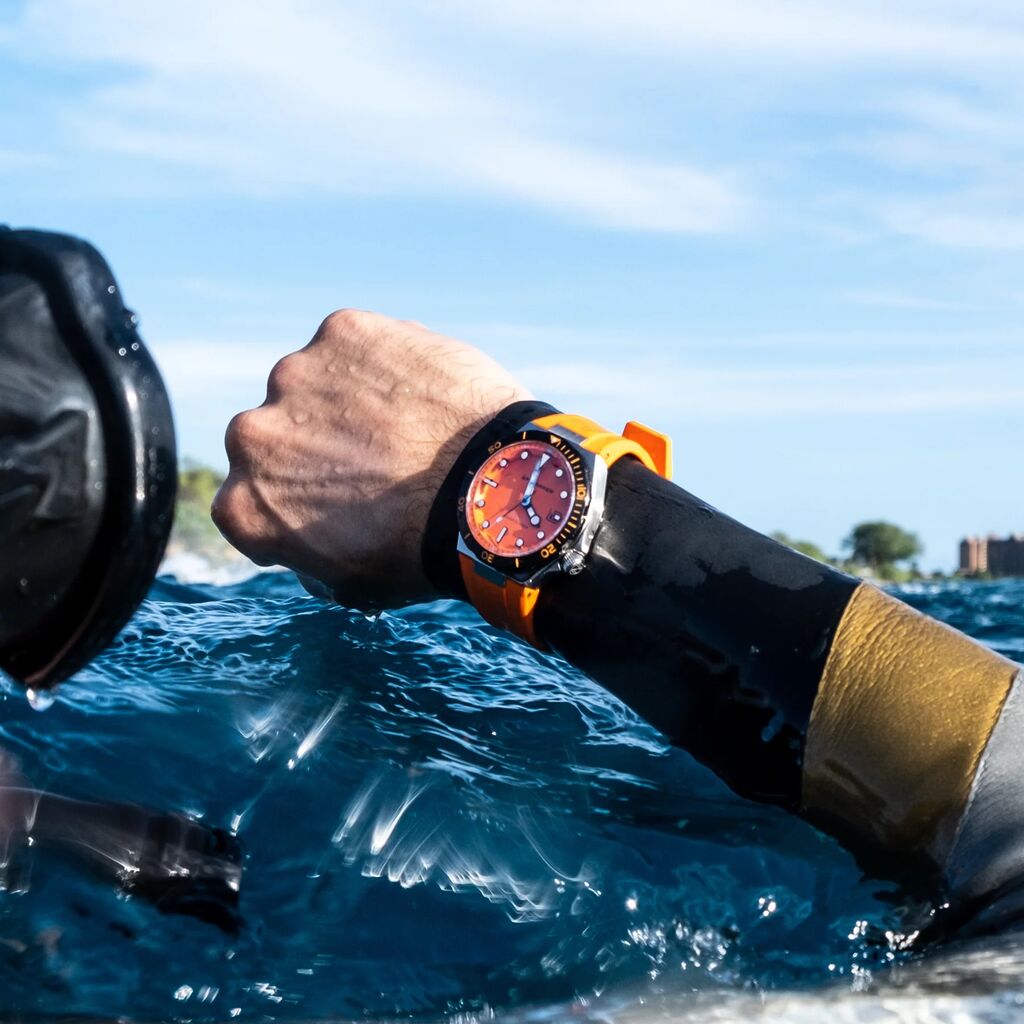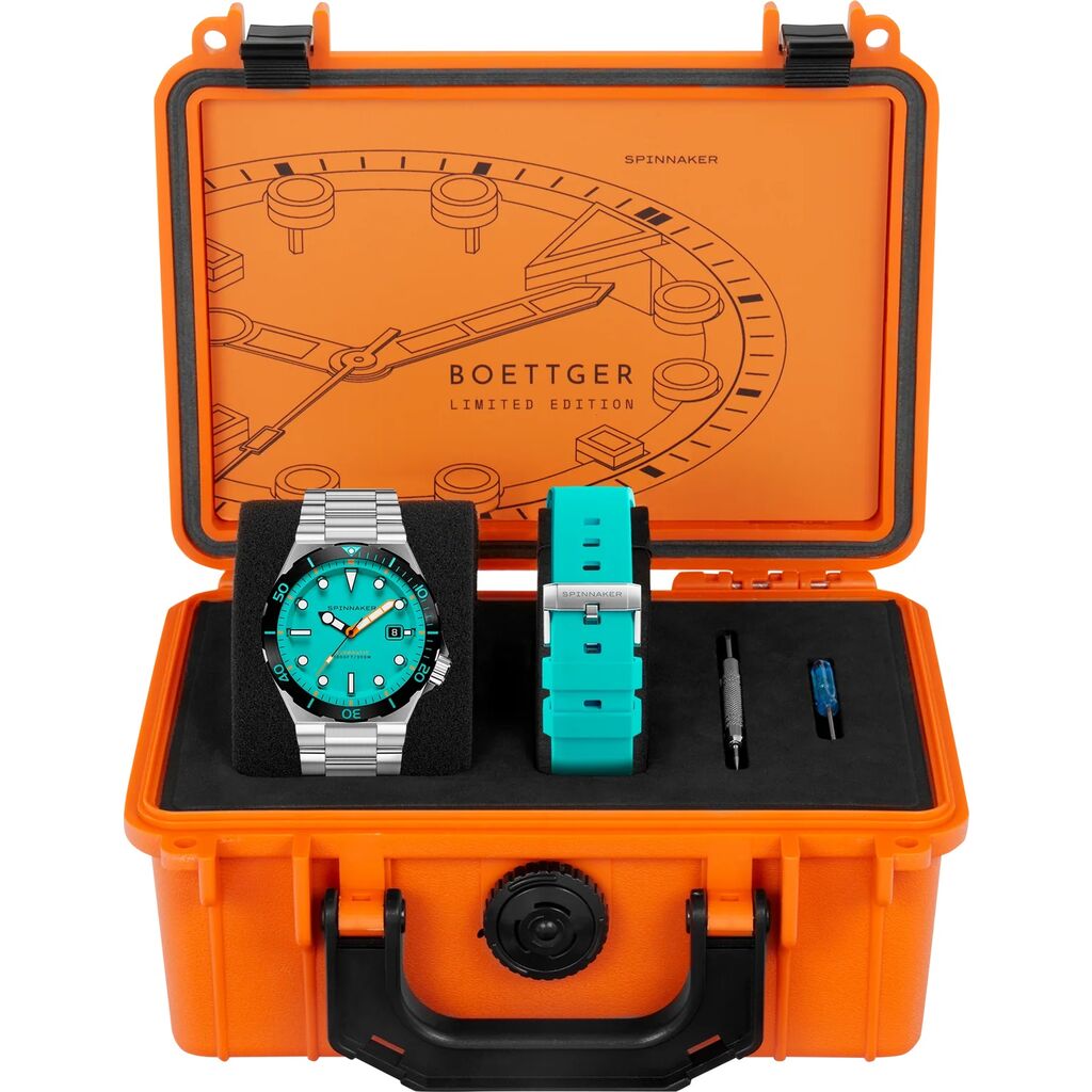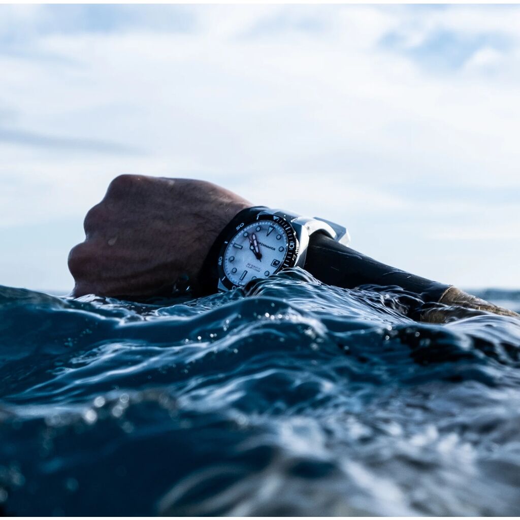 Once an experiment in cutting edge design, the Boettger with an integrated Nitrile Butadiene Rubber strap is now a lighter yet no less impressive piece of dive timing instrumentation. Sleek, slim yet powerfully equipped to handle the rigours of the sea, the Boettger continues to elevate the concept of a dive watch with a timepiece complete with engineering excellence and design ingenuity.