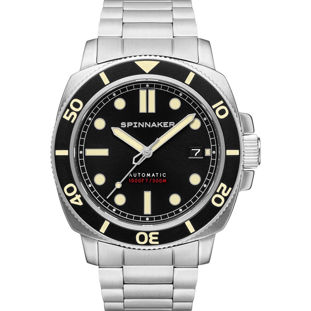 A scratch-resistant, sapphire lens tops a pillow-shaped case that features a ceramic insert uni-directional diver bezel lumed for excellent nighttime visibility. Water-resistant to 300M, the never imposing case is just at home on a wet suit as it is with your boardroom suit.
