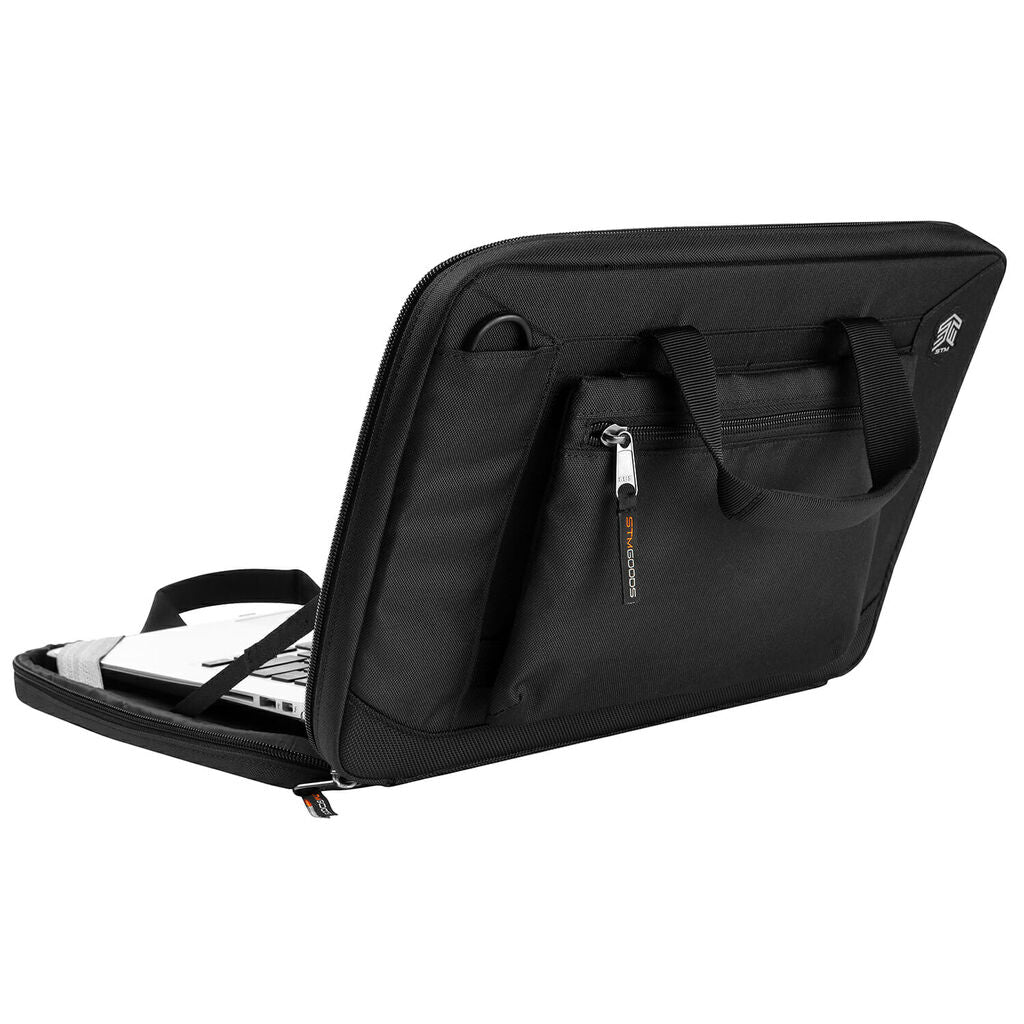 - Double-layer protection – laptop is suspended in the bag and encapsulated in a combination of cushy, padded foam and rigid, textured polycarbonate