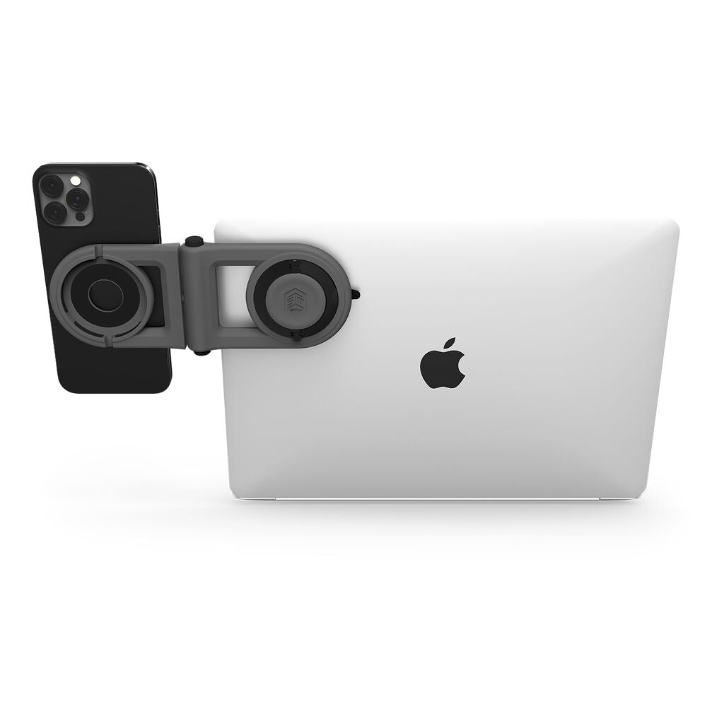 Working with multiple devices is a lot easier when they sit next to each other, and that’s where the MagArm really carries the load. The MagArm is a MagSafe-enabled phone mount that easily attaches to the back of your laptop screen, placing your phone in the same viewing angle as your laptop. The swivel hinge provides the perfect viewing angle, keeping your phone up and out of the way of your busy desktop, even allowing you to charge your phone while suspended above the clutter.