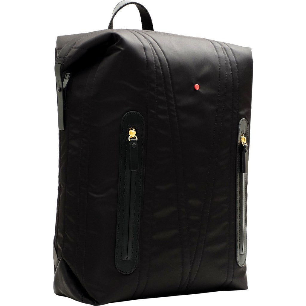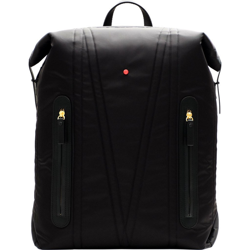 The 16T/F Backpack by Teddyfish, with its unique boxy shape and polished style, has the ample storage and sleek design to work as a daypack or a bag for longer trips. Two vertical zippers on each side provide simple access and provide a unique design symmetry, while the all-black coloration is contrasted with a small, playful touch: a red dot in the center of the pack. Gold metal zippers add a big of flair to the bag, combining with the industrial-like efficiency of the design and leather canvas for a bag that's truly exceptional.