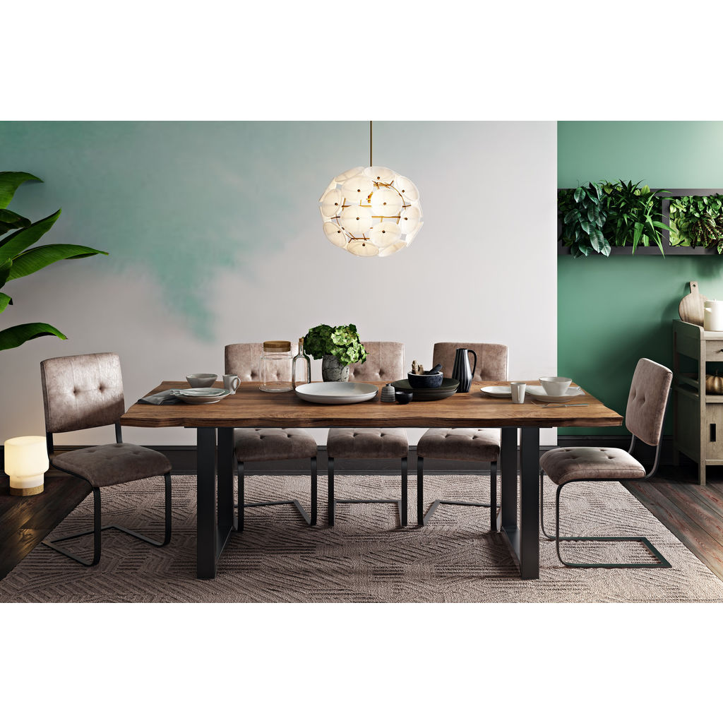 Looking for a dining room table to match your industrial design? The TOV Furniture Carter Rustic Elm Dining Table combines industrial design with nature to create a cool modern look. The table top is made from Elm, a rich dark wood texture, and black steel legs that will give you a unique design that you are sure to love. Natural variations in the wood are to be expected, as no two tables are exactly alike.