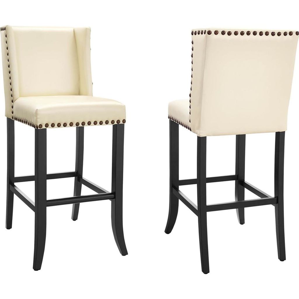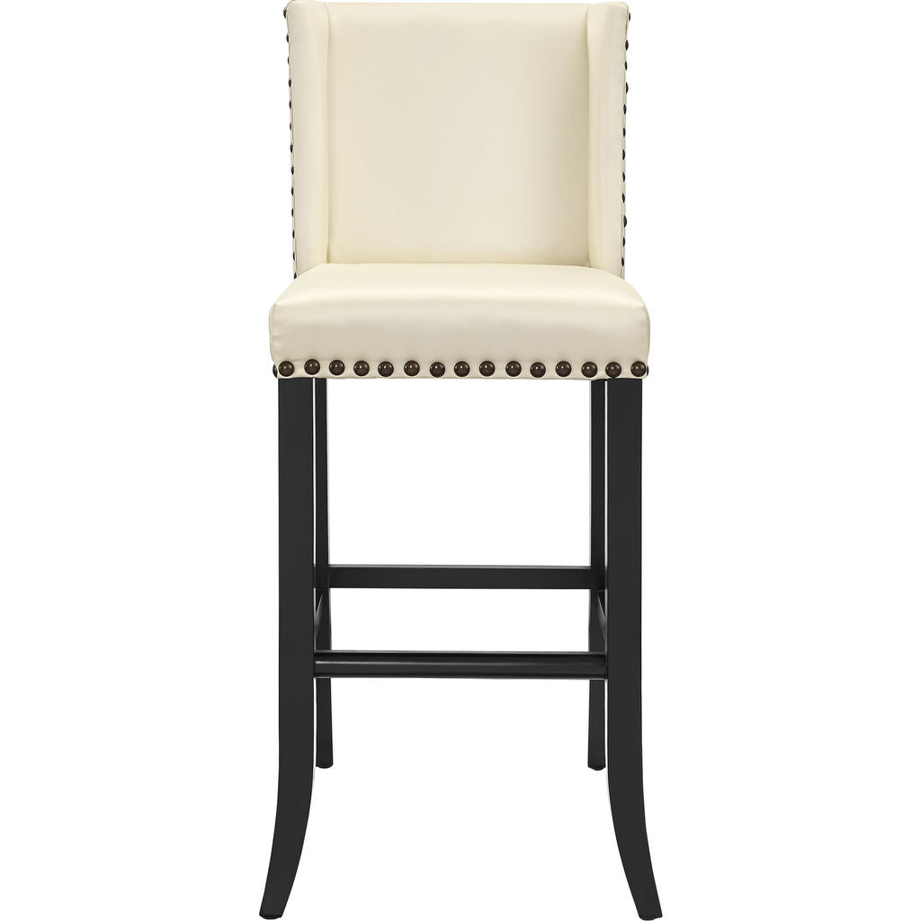 The TOV Furniture Denver Bar Stool is made with beautiful cream Eco Leather. The leather has been specially treated to resemble iridescent silk while remaining durable and easy to clean. Featuring bronze nail heads that have been applied by hand. This stool is supported by a solid wood frame crafted from solid birch wood.