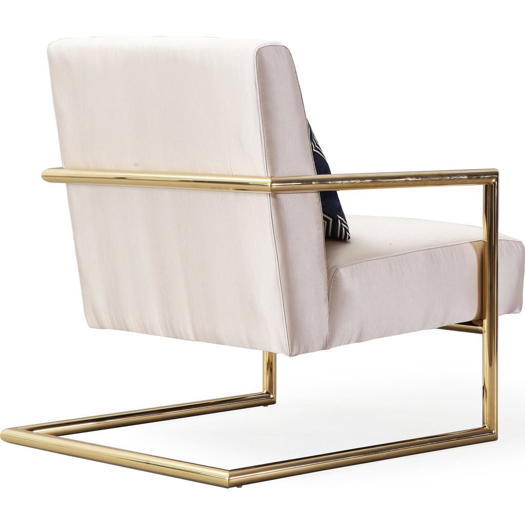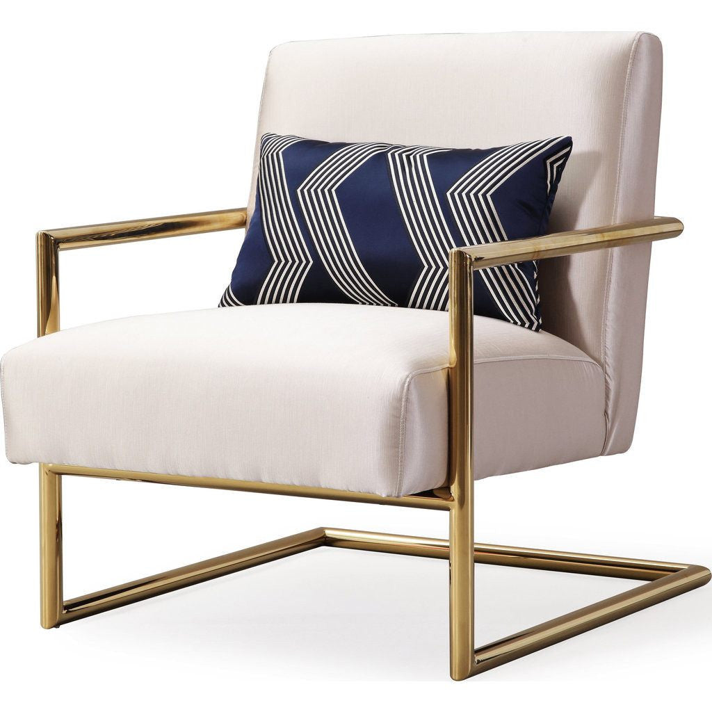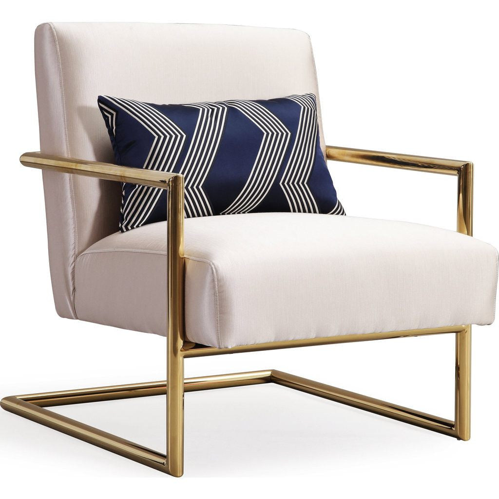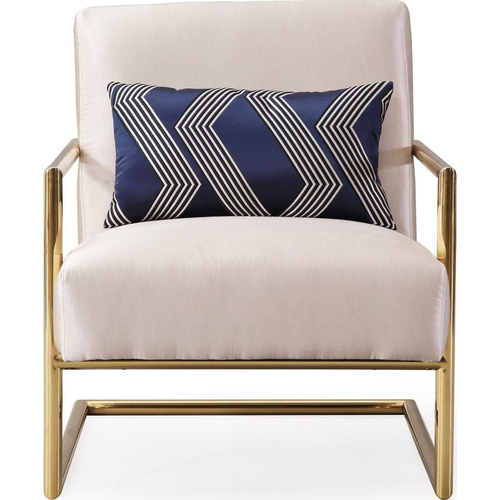 For a subtle pop of glam, just add the Elle Linen Chair. This elegantly designed chair features beige metallic linen upholstery that is perfectly complemented by a gold stainless steel frame. Pulling the whole look together is a chic navy lumbar pillow, truly putting the icing on this decadent cake.