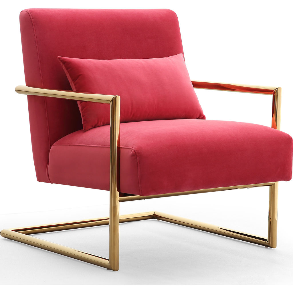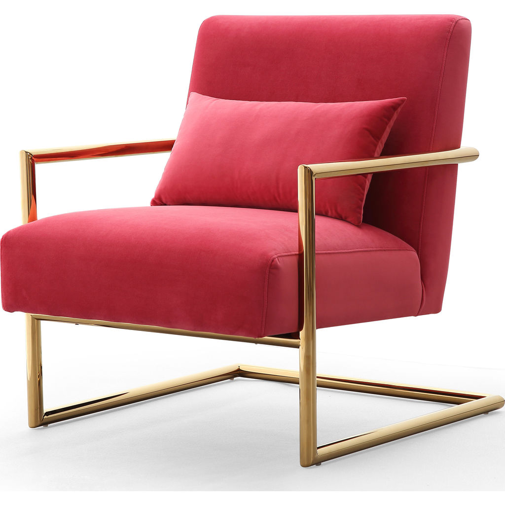 For a subtle pop of glam, just add the Elle Pink Velvet Chair. This elegantly designed chair features vibrant pink velvet upholstery that is perfectly complemented by a gold stainless steel frame. A modern design that is sure to make a statement in any room in your home.