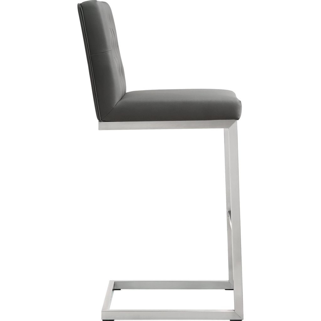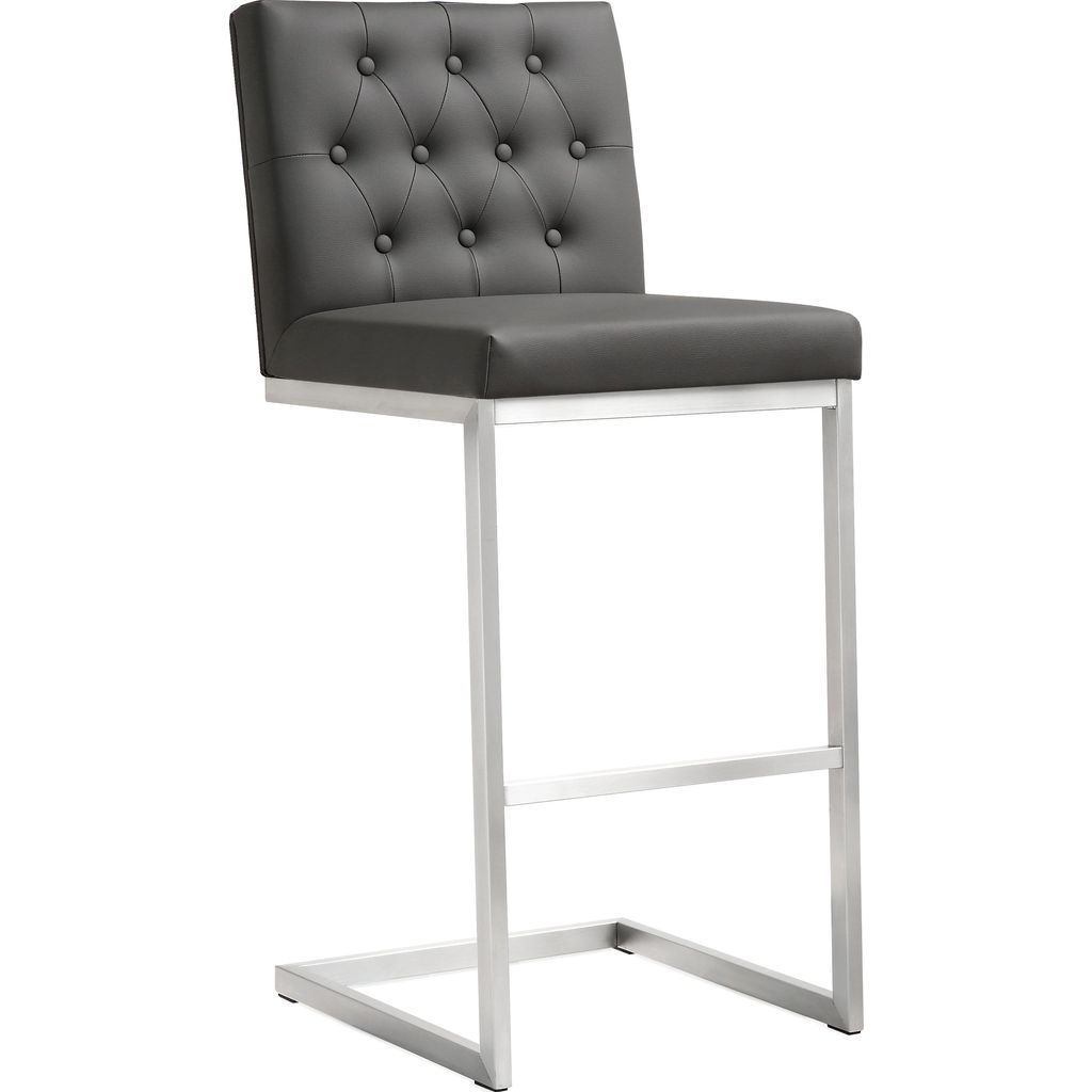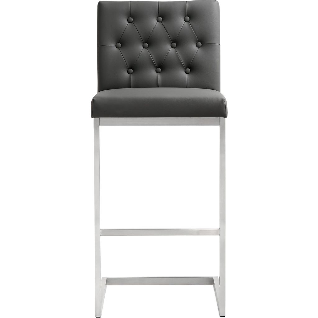 Complete the look in your kitchen with the stylish TOV Furniture Grey Helsinki Stainless Steel Barstool Set of two. These contemporary black bar stools are crafted with a solid stainless steel frame and base. Featuring a plush seat and footrest to ensure you will stay comfortable. The combination of angles and gentle curves will make this chair stand out while the neutral color will match well with almost any decor.