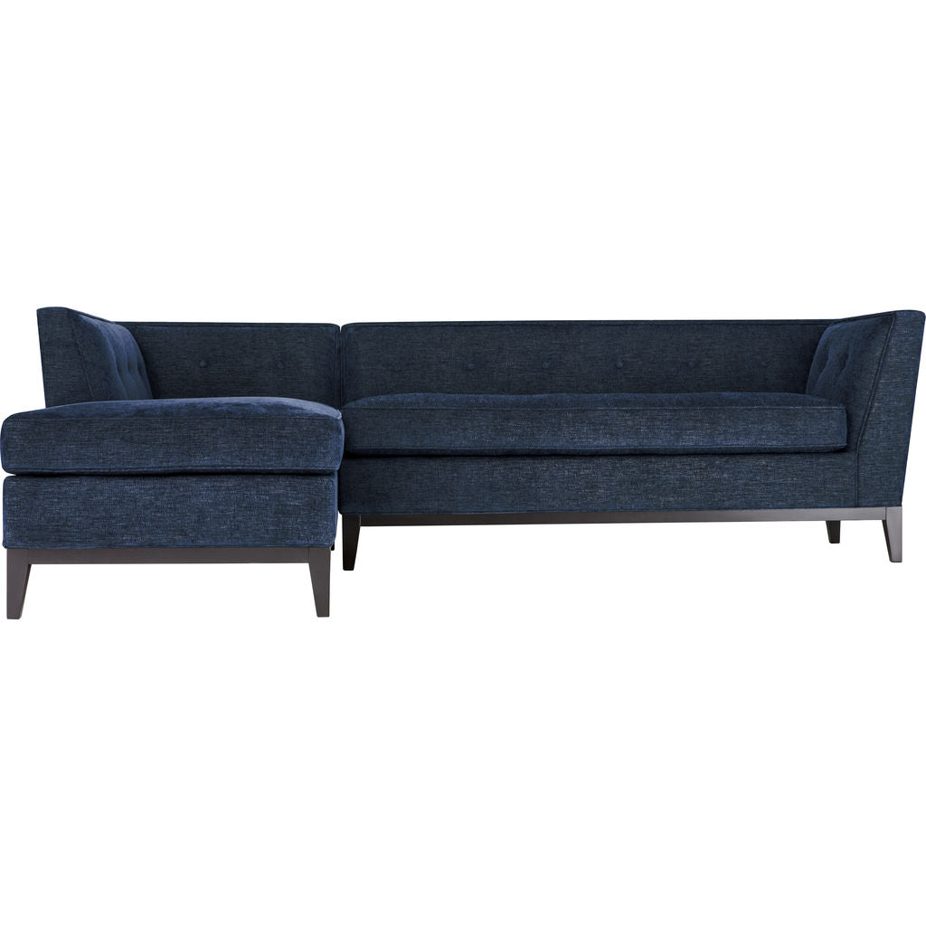 TOV Furniture was inspired by classic Mid-Century design when they created the Navy Jess Textured Linen LAF Sectional. This is the perfect sofa for your living room, it is comfortable and stylish. The craftsmanship is impressive, completely handmade and built to last for years to come. Featuring a kiln dried wooden frame, button tufting, piped stitching and a solid Birch wood trim and legs. This eye-catching sectional will add personality to any space.