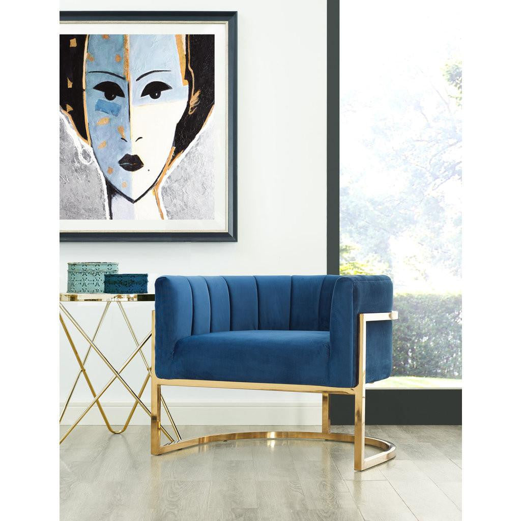 Turn up the glam with the uniquely designed Magnolia Chair. This gorgeous navy chair sits on a gold frame and stuns from any angle. Versatile enough for just about any room in the house.