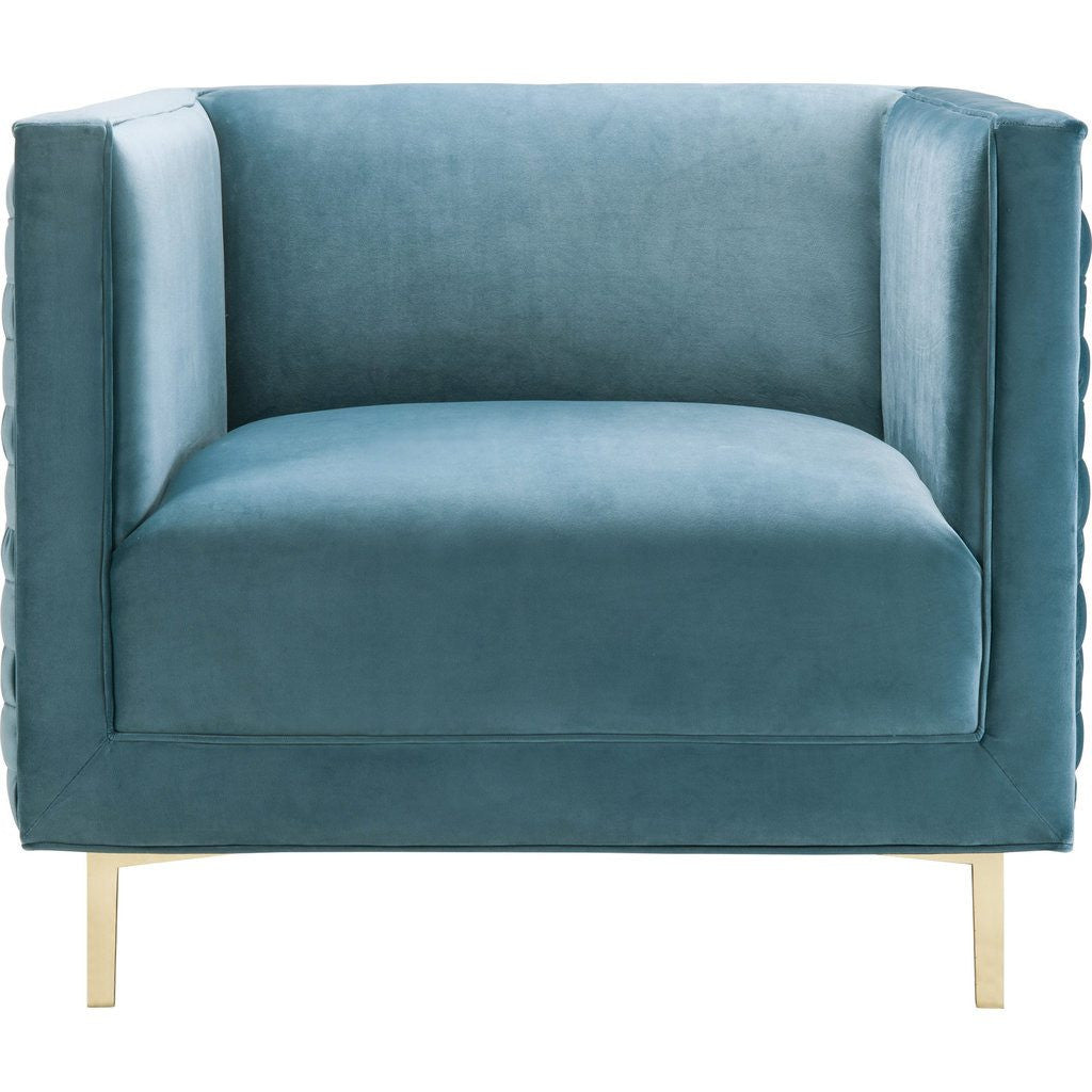 The Sal Chair features a beautiful hand-woven pattern of plush velvet, sitting on glossy gold legs. This chair gives vibes of modern sophistication that are sure to complement any room in the house.